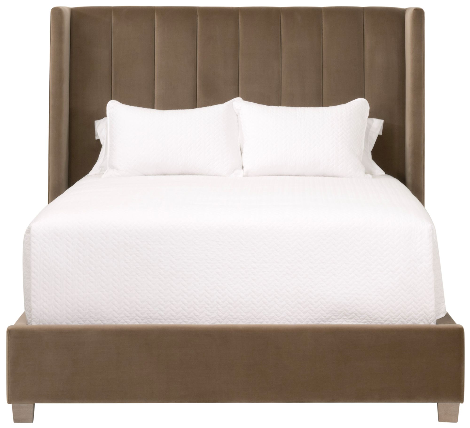Chandler Queen Bed, Caramel Velvet, Natural Gray Oak
