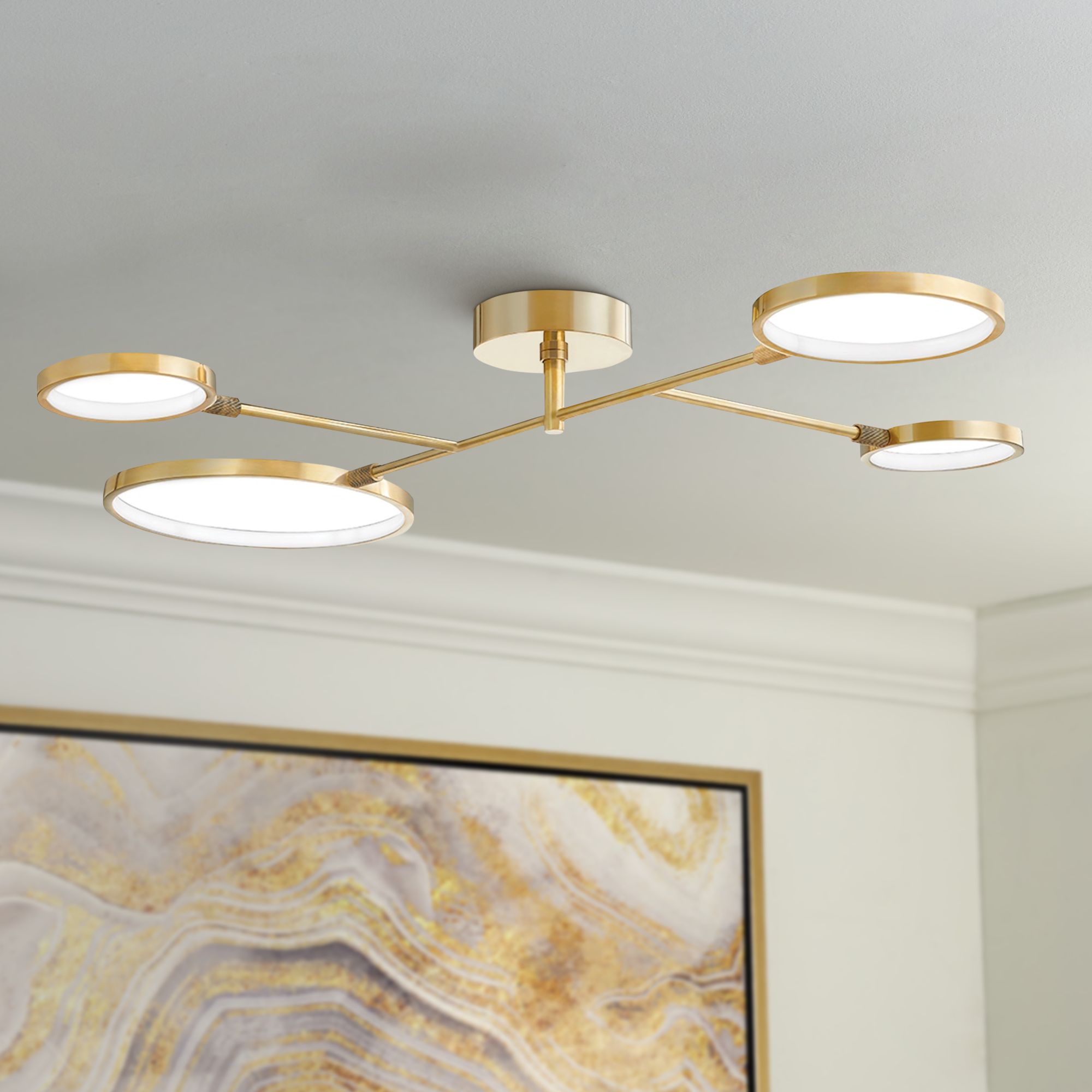 Hudson Valley Saturn 43"W Aged Brass 4-Light Ceiling Light