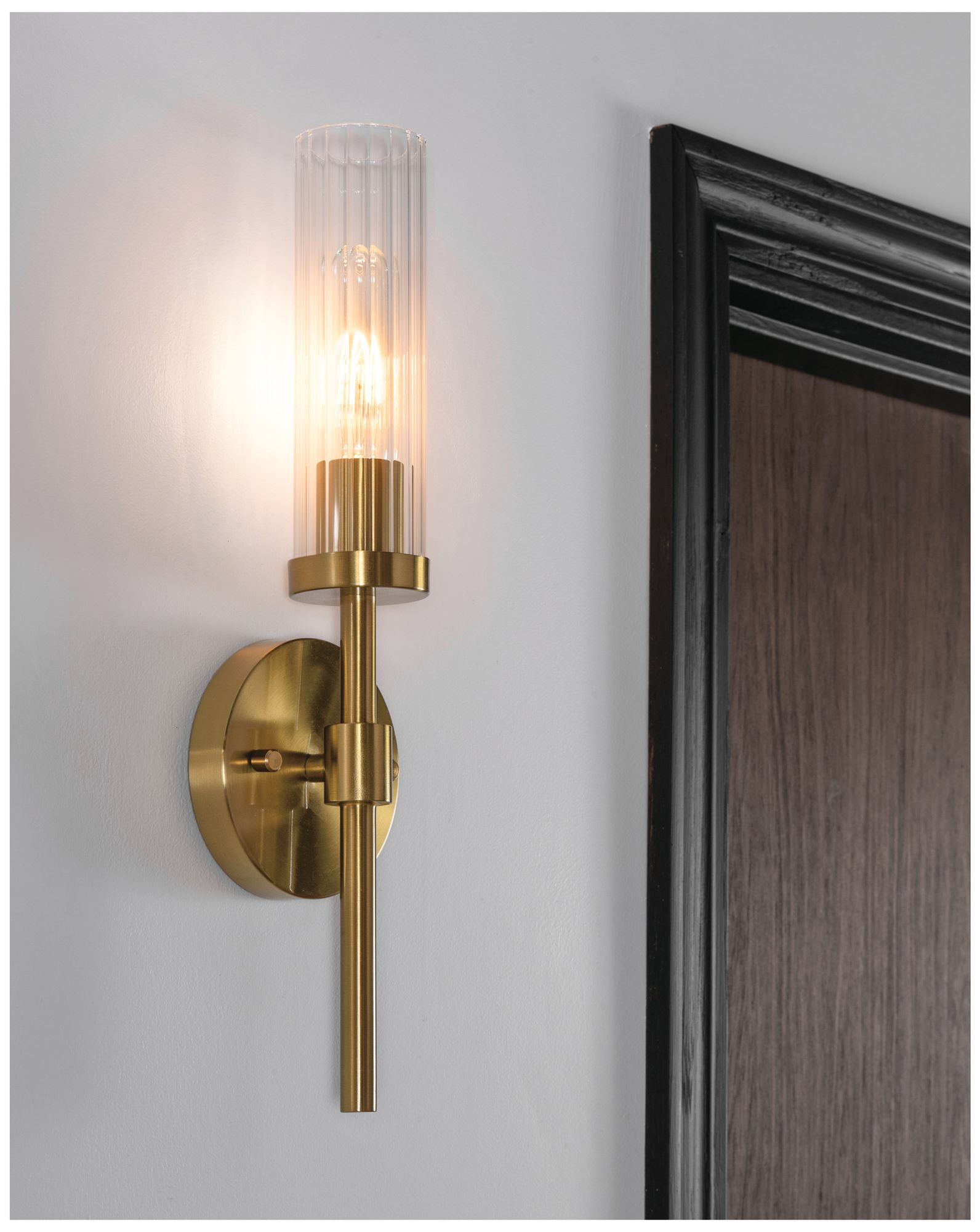 Leo 8.63" High Light Antique Brass Wall Sconce With Clear Glass Shade