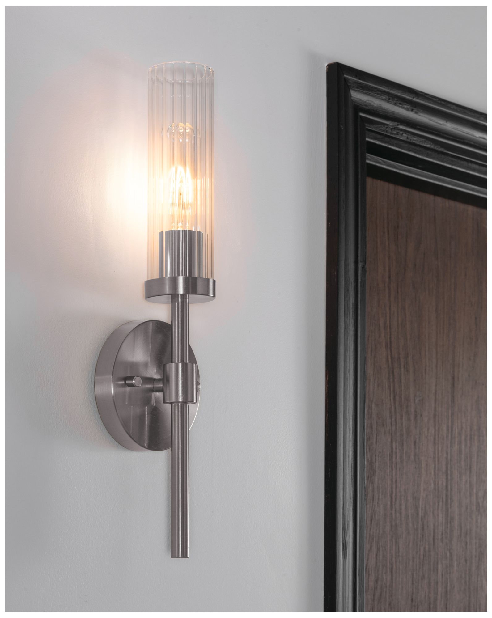 Huntington 18" High Satin Nickel Wall Sconce With Clear Ribbed Glass S