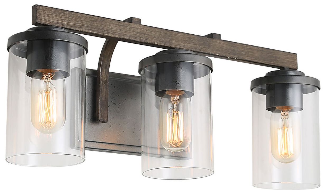 Fouma 20" Wide Distressed Black Faux Wood 3-Light Bath Light