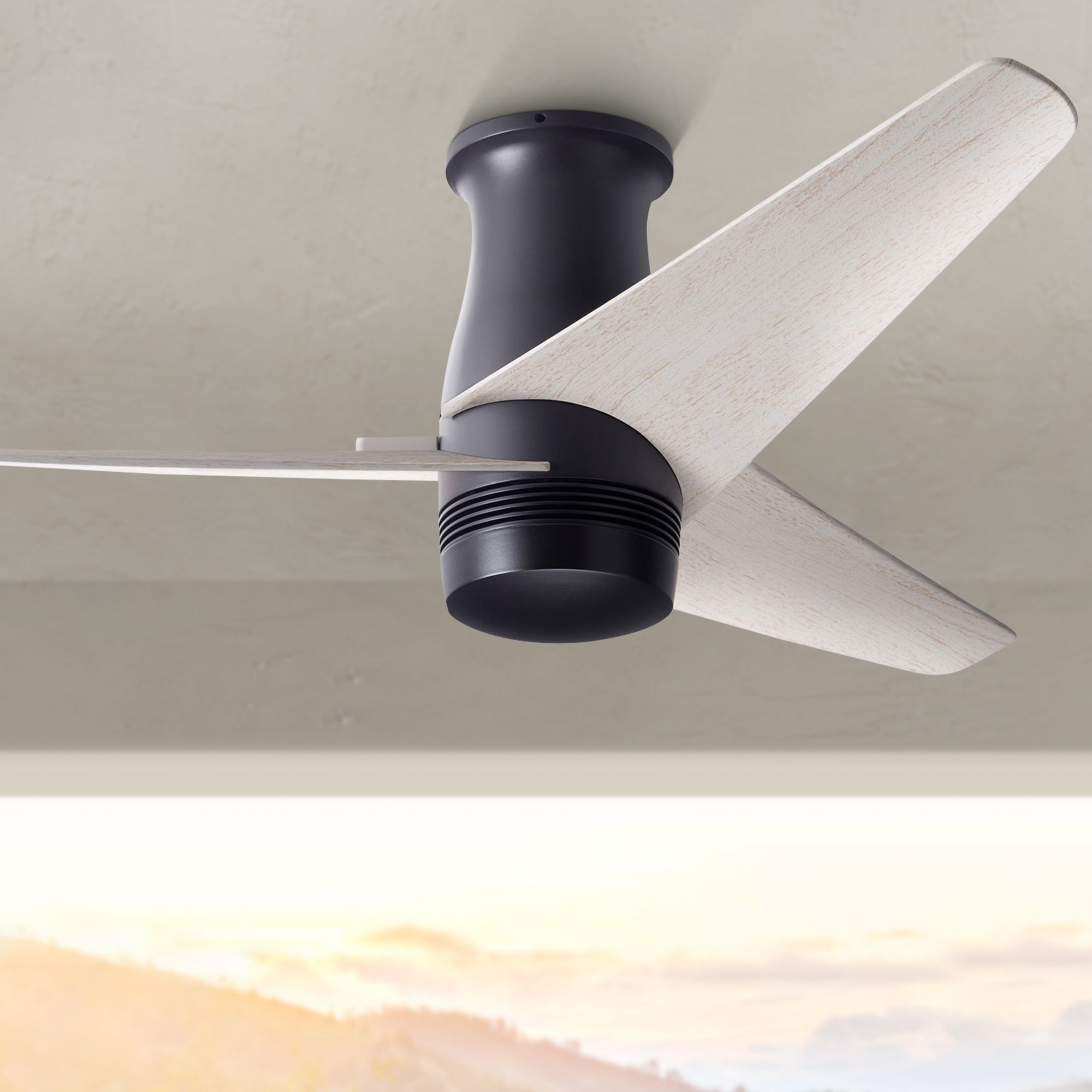 48" Modern Fan Velo Dark Bronze Whitewash Damp Hugger Fan with Remote