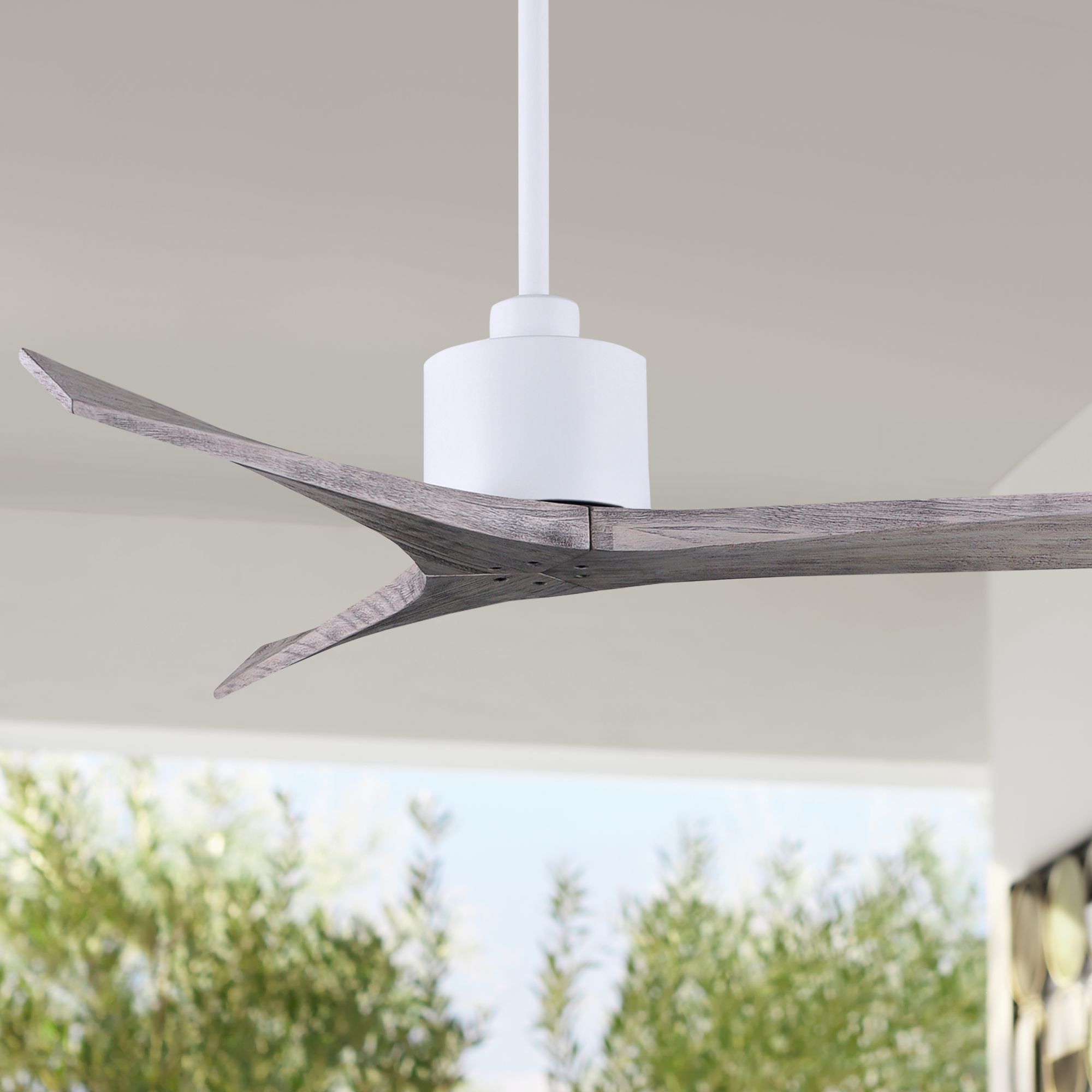 60" Matthews Mollywood Matte White Barnwood Damp Rated Fan with Remote