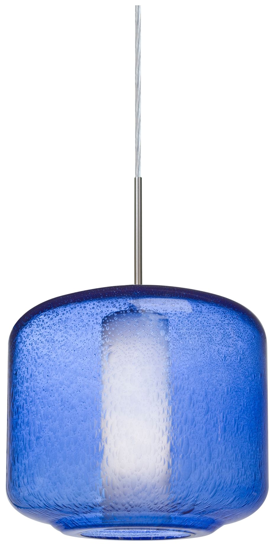 Besa Niles 9 1/2" Wide Blue Bubble/Opal/Satin Nickel 1-Light Pendant