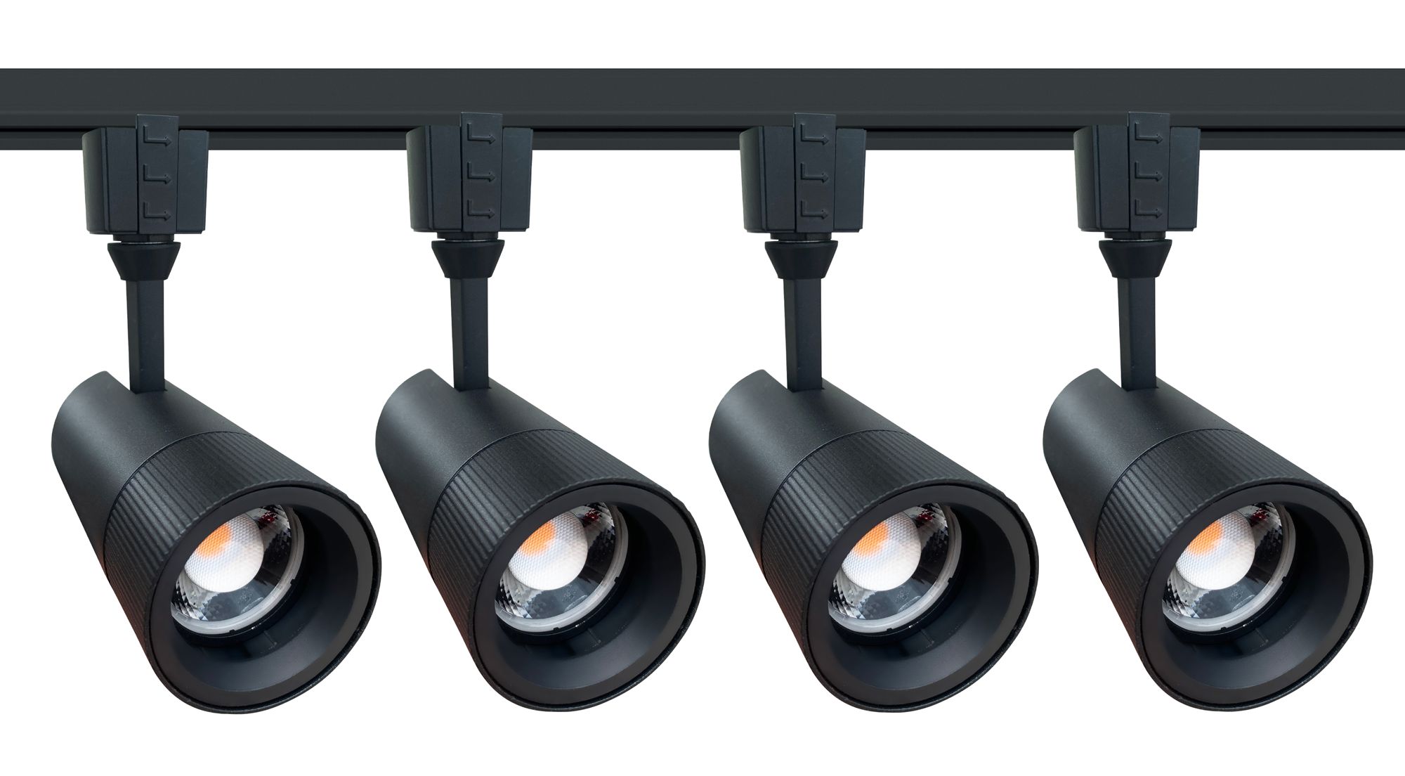 Tackle an installation of track lighting with this four-light modern LED black finish canopy kit by Pro Track®, starting with a thermoplastic canopy with anti-glare cylinder track heads offering several beam angles. Track may be mounted under an outlet box. This energy-efficient kit features a floating electrical end feed, a floating connector, outlet box cover, extra track dead-end caps, and mounting hardware. This kit is dimmable with the separate purchase of compatible dimmers.