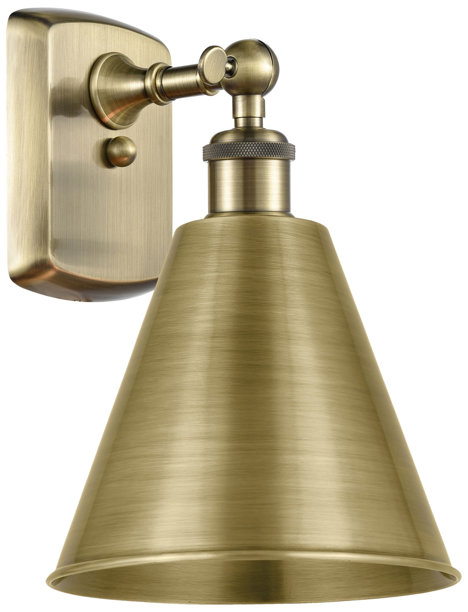 Ballston Cone 11.25"High Antique Brass Sconce With Antique Brass Shade