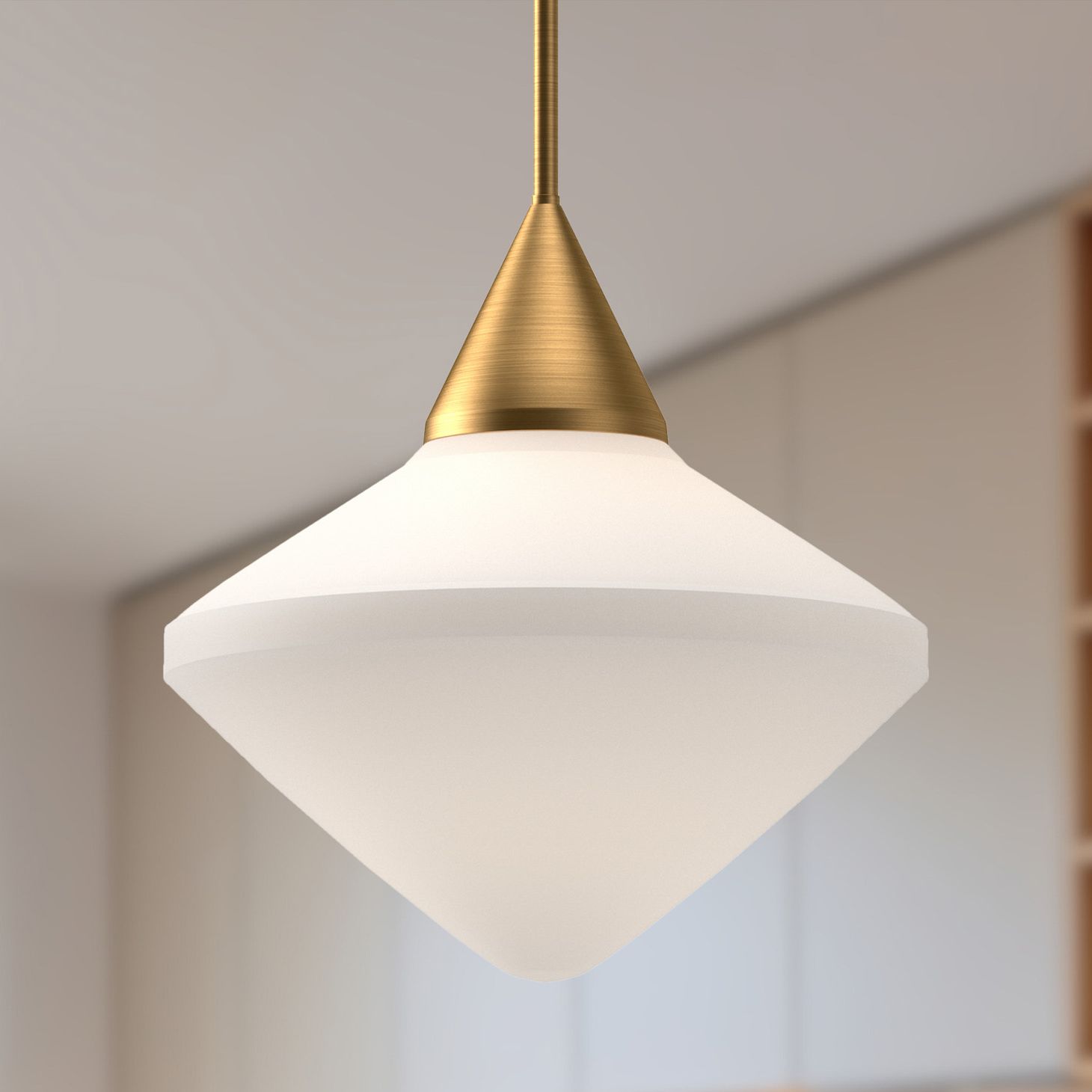 Alora Mood Nora E26 14-in Aged Gold/Opal Matte Glass Pendant