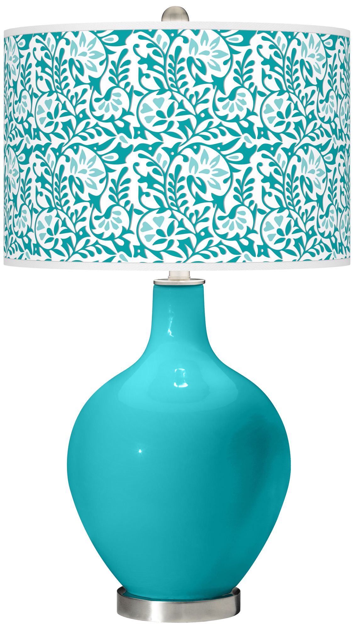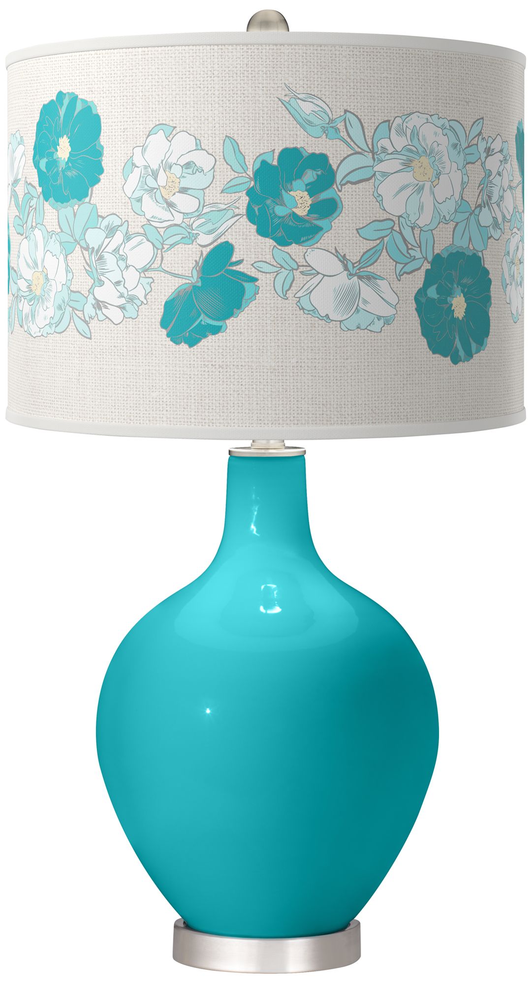 Color Plus Ovo 28 1/2" Rose Bouquet Shade Surfer Blue Table Lamp