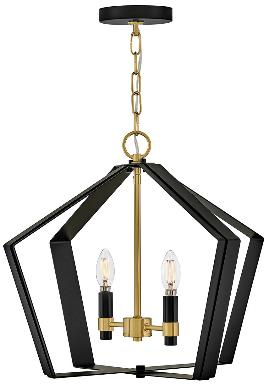 Bright and buoyant, this modern two-light pendant introduces crisp contrast and easy rhythm overhead. From the Sammi collection by Lark from Hinkley, black metal plays against lacquered brass details for clear definition. Use it to energize a dining space, a home office, or a long entry hall.