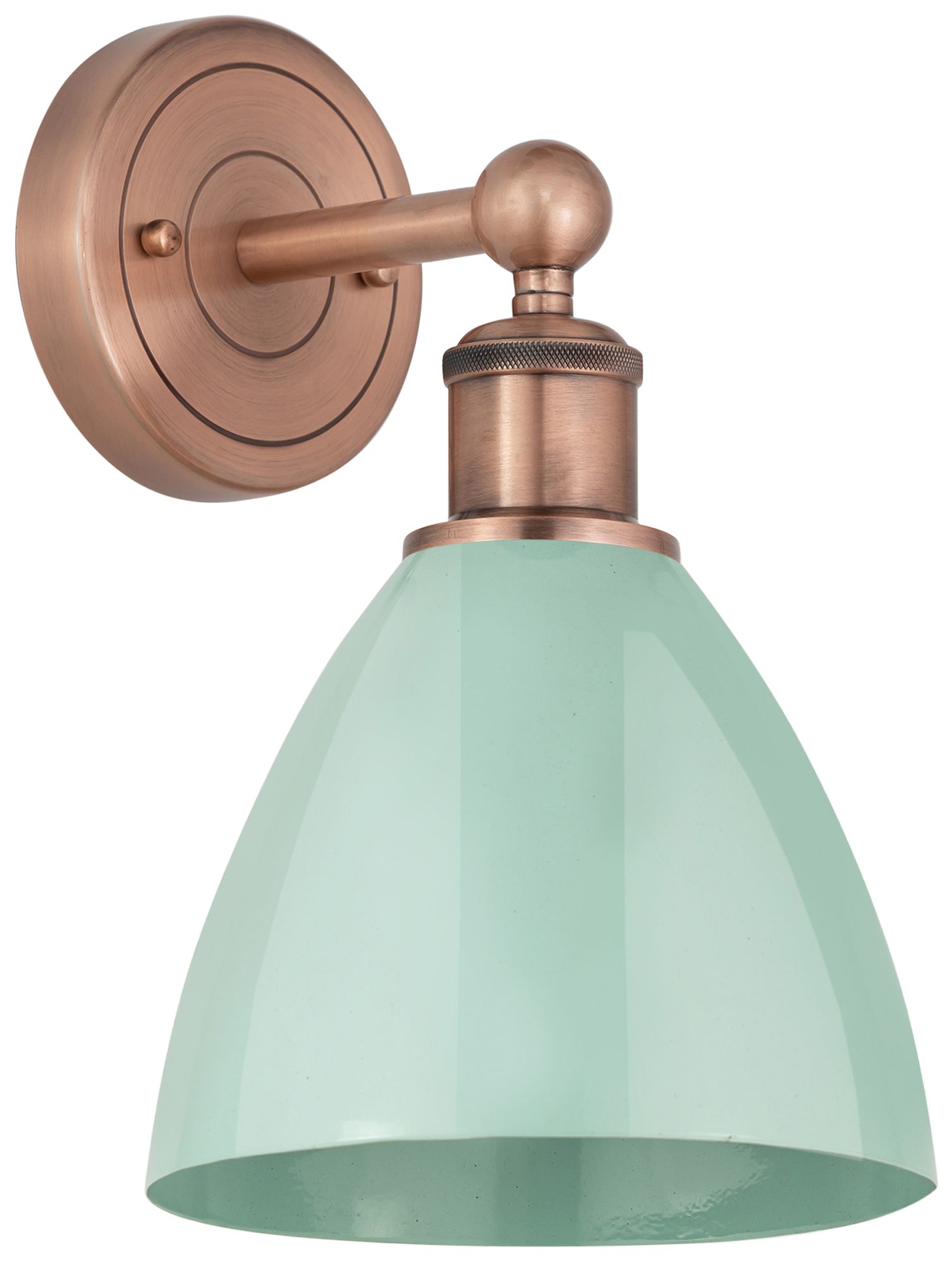 Edison Plymouth Dome 12"High Antique Copper Sconce With Seafoam Shade