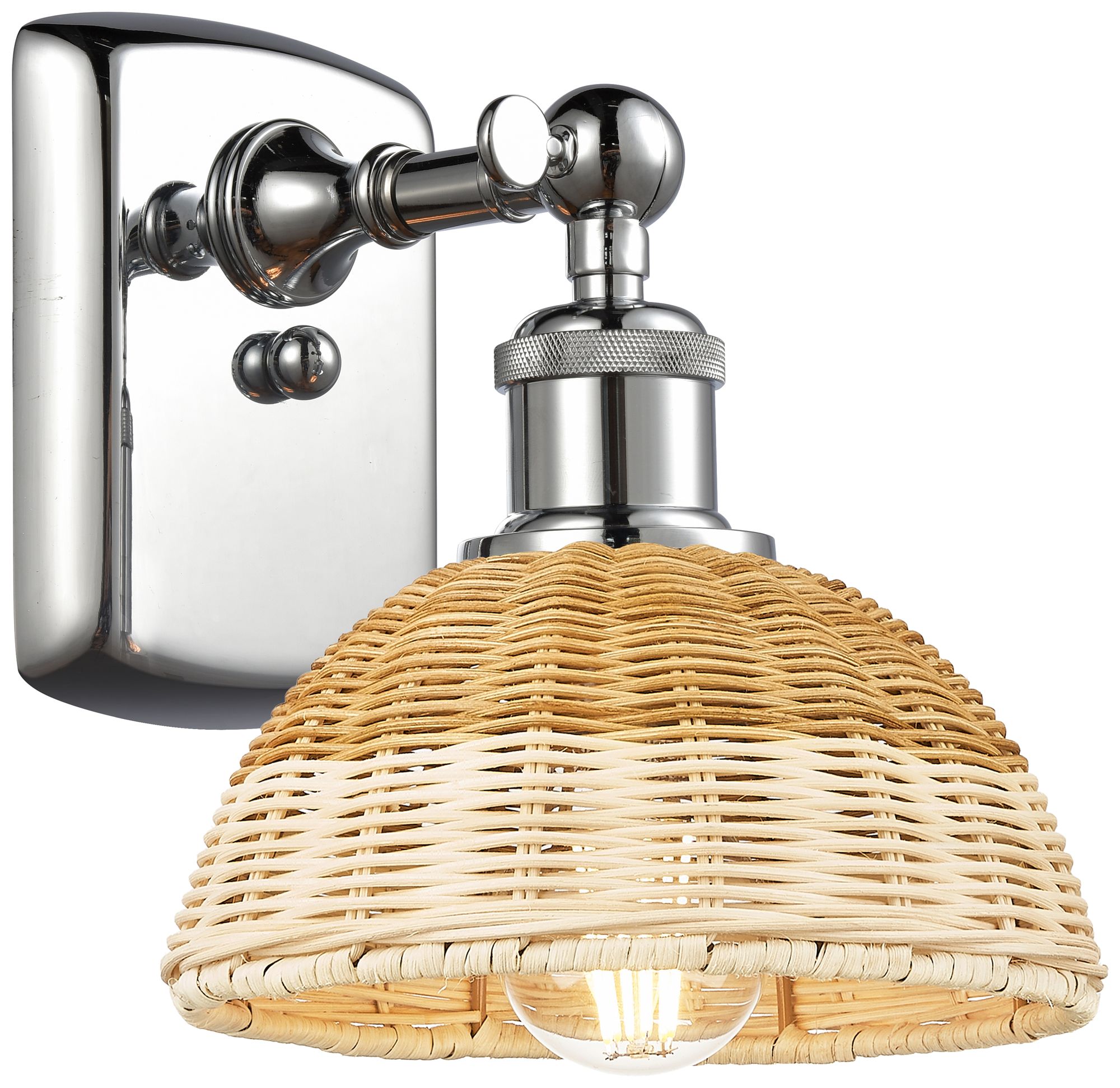 Edison Woven Rattan 11" High Polished Chrome Sconce With