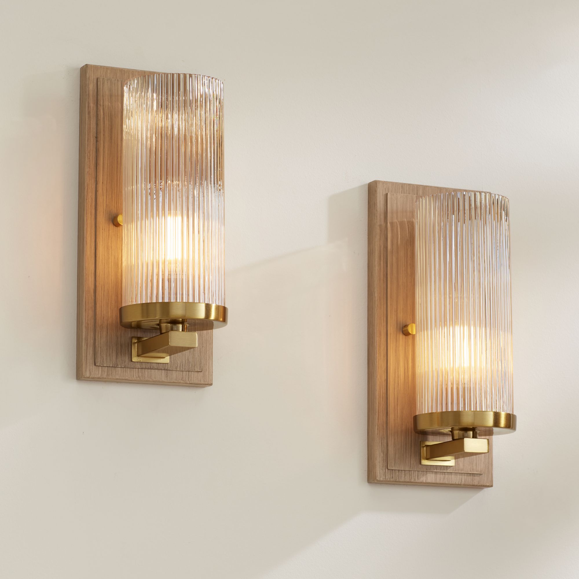 Stiffel Palais 12 1/2" High Gold and Wood Wall Sconce Set of 2