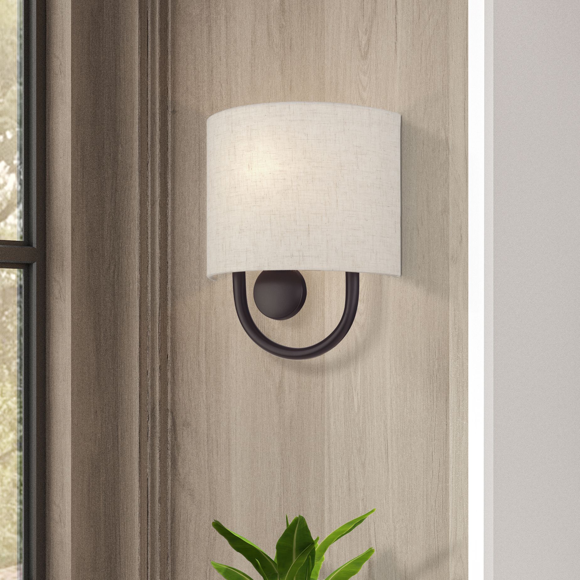 Hudson 13"H 1-Light Bronze Iron Beige Linen Wall Sconce