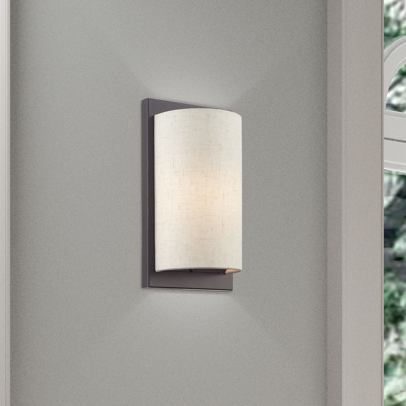 Z-Lite Jade 6 3/4" High Factory Bronze and Linen Shade Wall Sconce