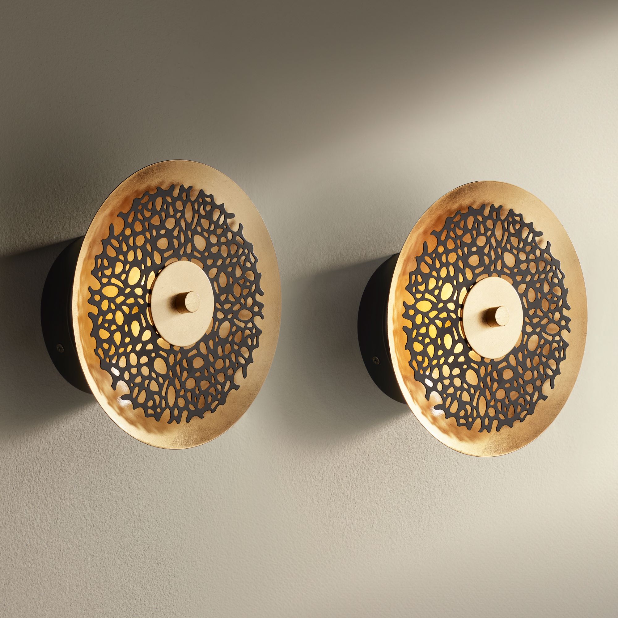 Possini Euro Kora 8 1/2" High Black and Gold Leaf LED Wall Sconce Set