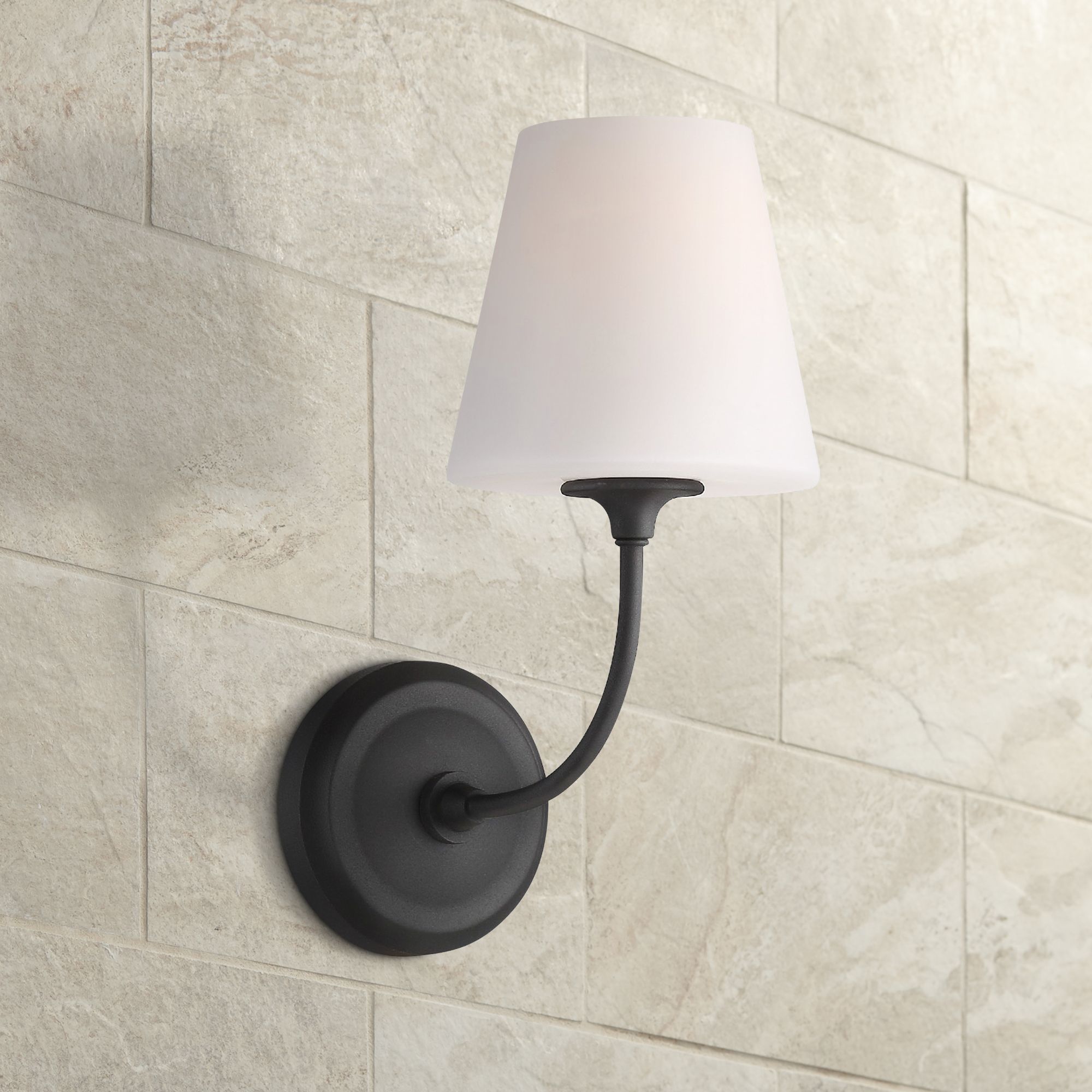 Crystorama Sylvan 13 3/4" Black Finish White Glass Shade Wall Sconce