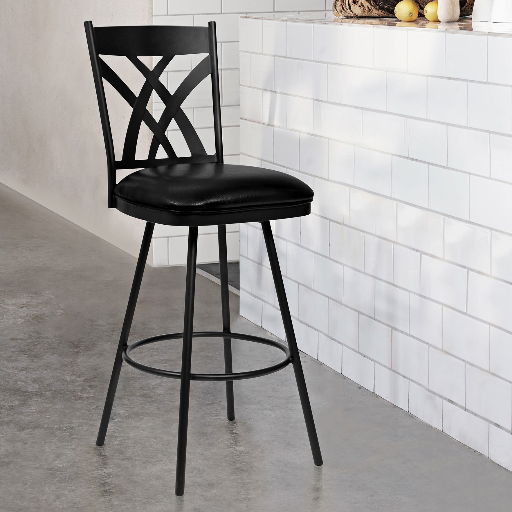 Dover 26" Ford Black Faux Leather Swivel Counter Stool