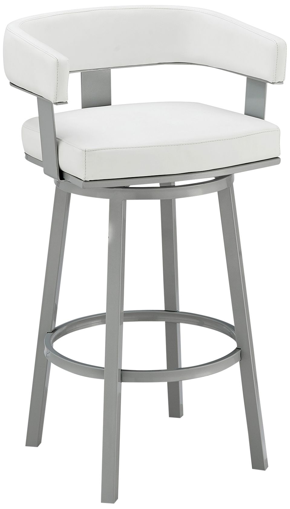 Lorin 26" White Faux Leather Silver Metal Counter Stool