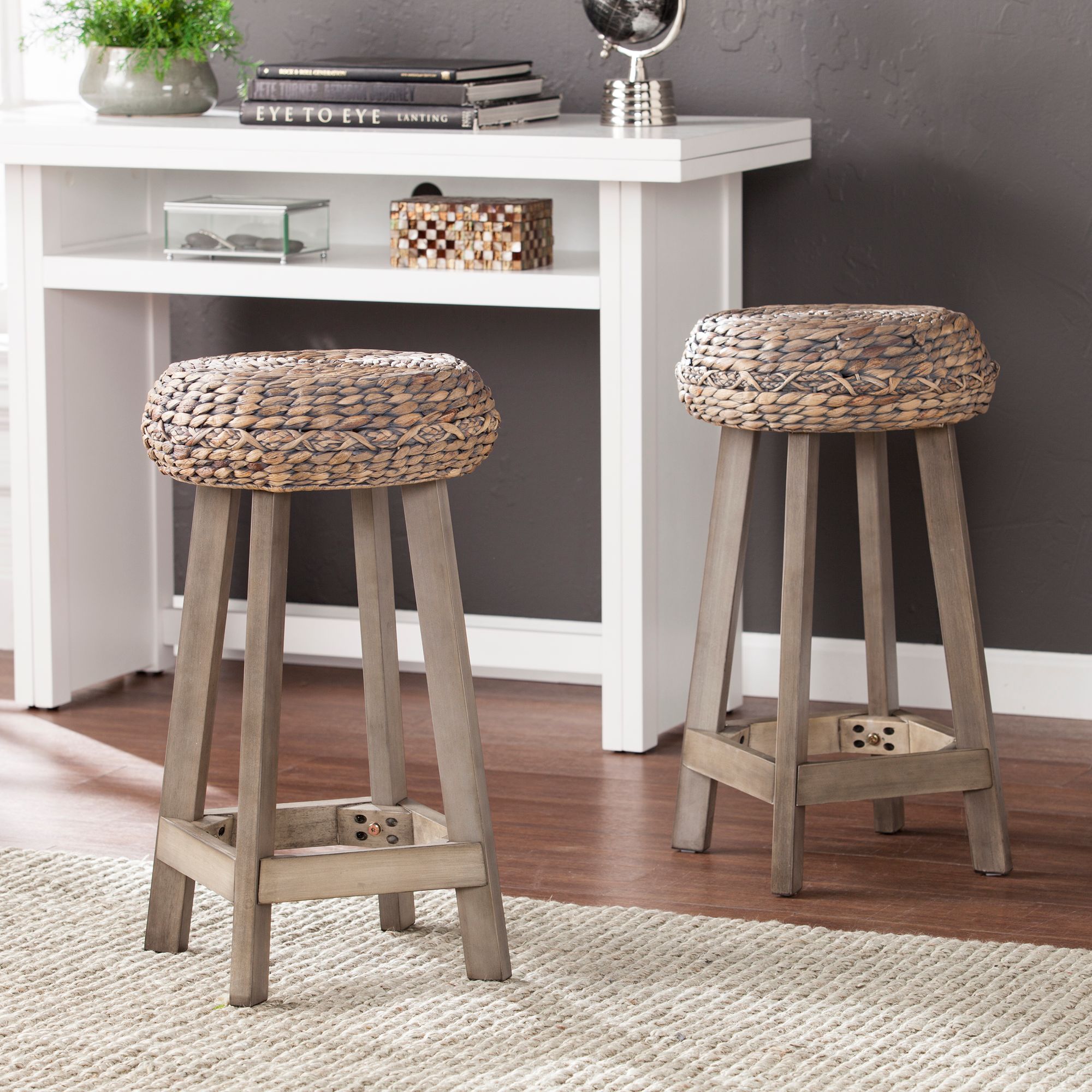 Rutina 24" Gray Water Hyacinth Weave Counter Stools Set of 2