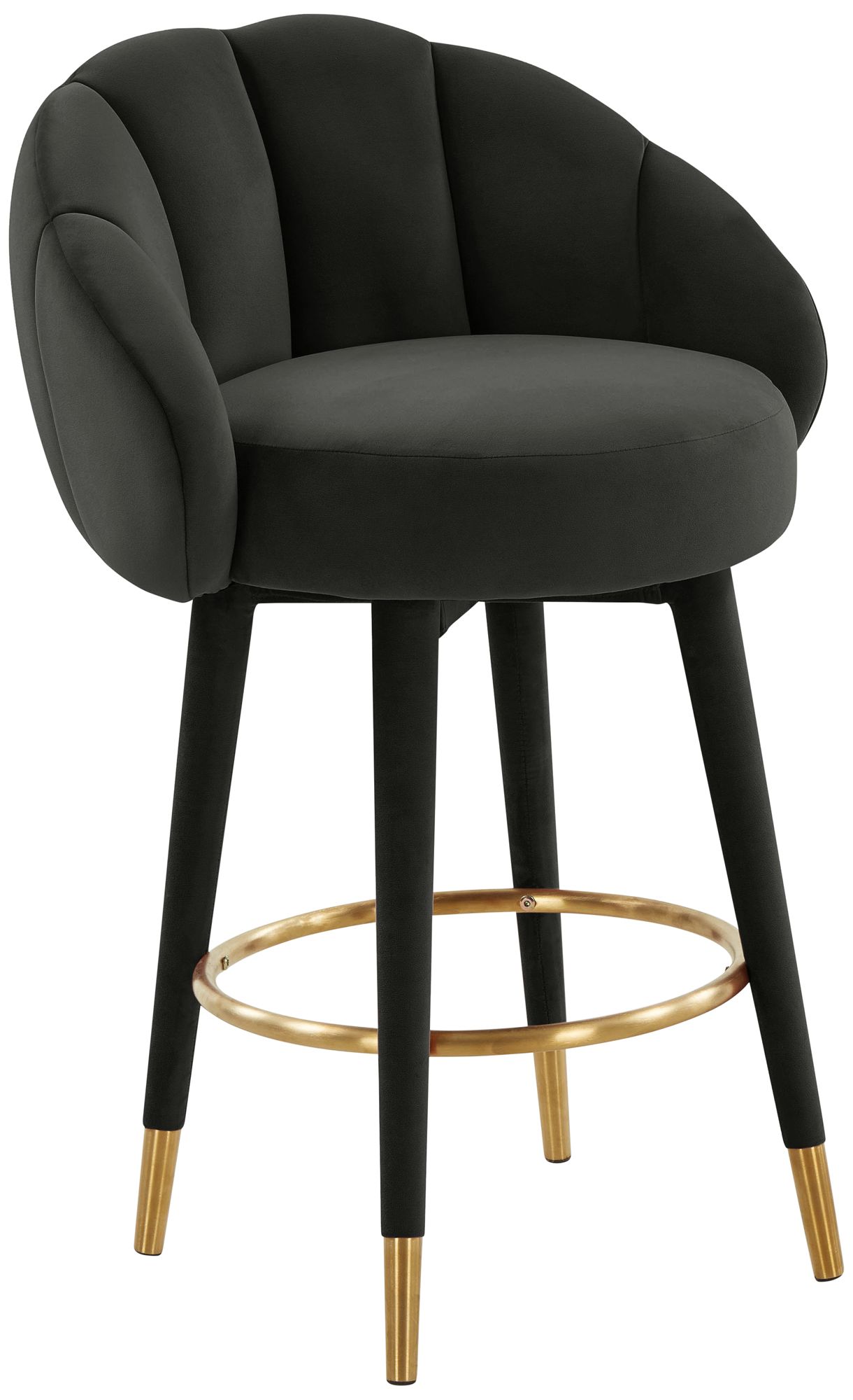 TOV Myla 26 1/2" Black Velvet Swivel Counter Stool
