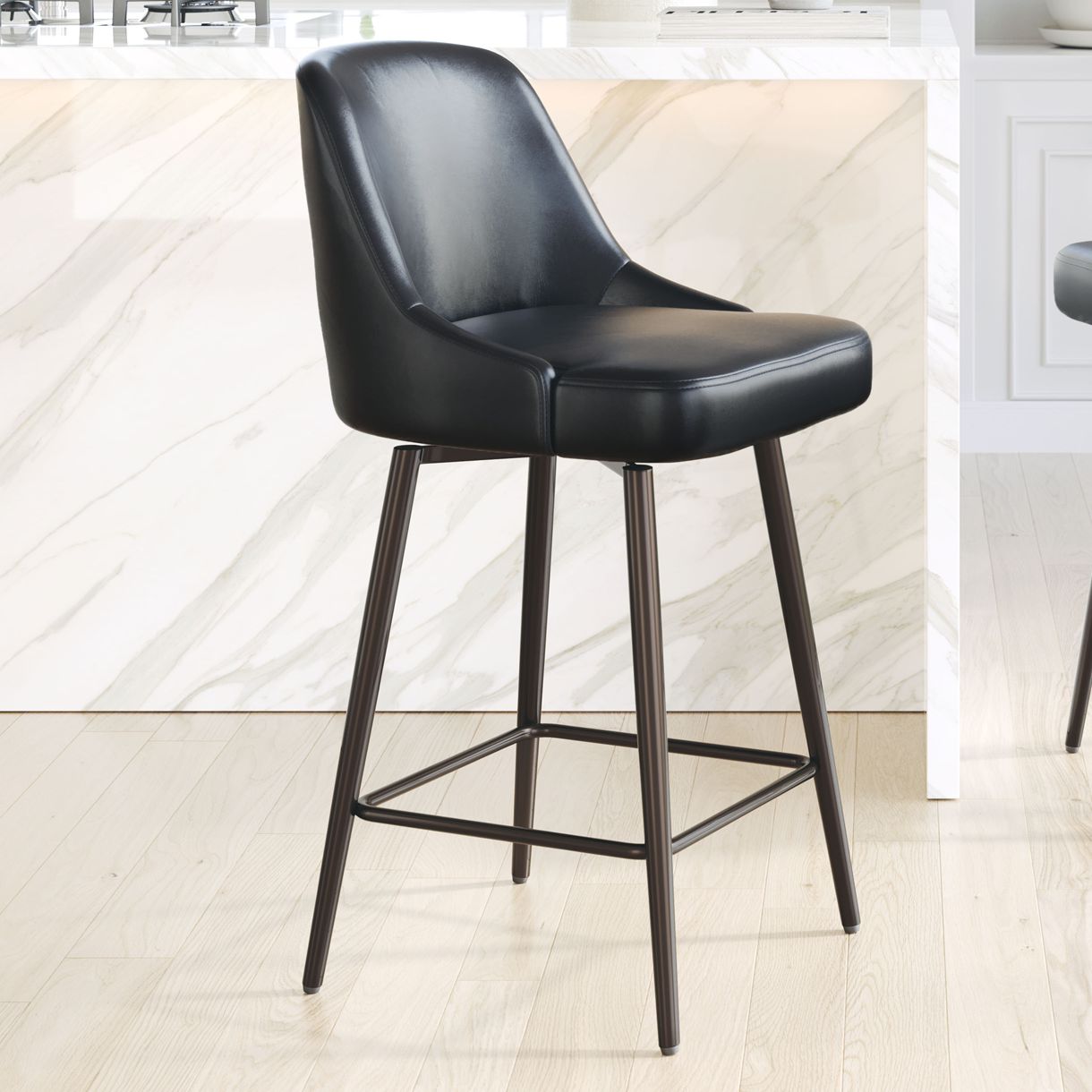 Zuo Keppel 26 1/2" Black Faux Leather Swivel Counter Stool