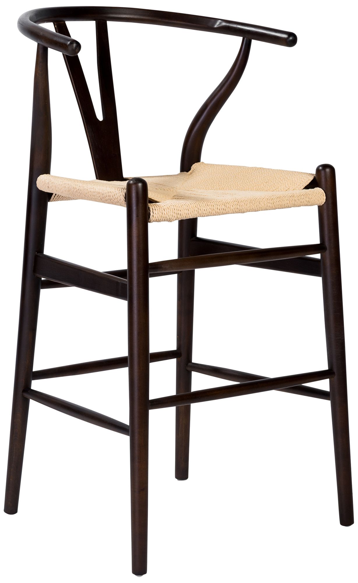 Evelina 26" High Walnut Wood Counter Stool with Natural Rush Seat