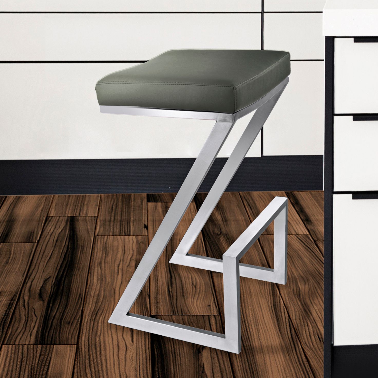 Armen Living Shelly 25 3/4" Gray Faux Leather Swivel Counter Stool
