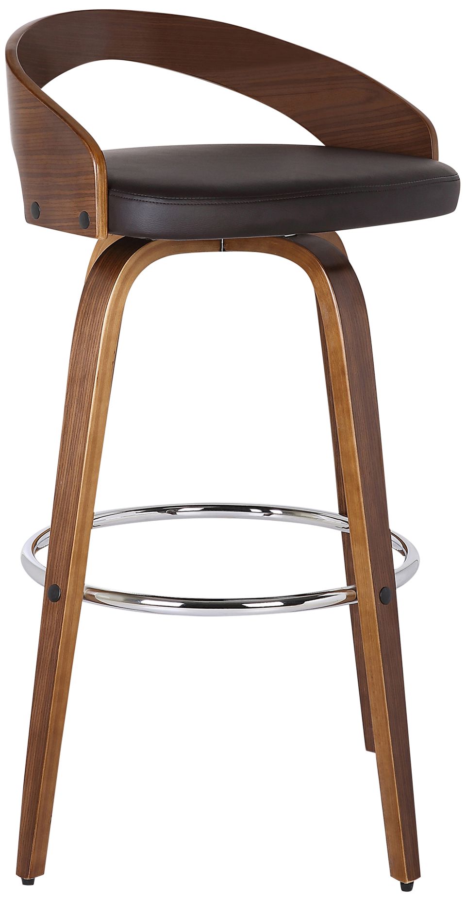Sonia 30" Walnut Wood Brown Faux Leather Swivel Bar Stool