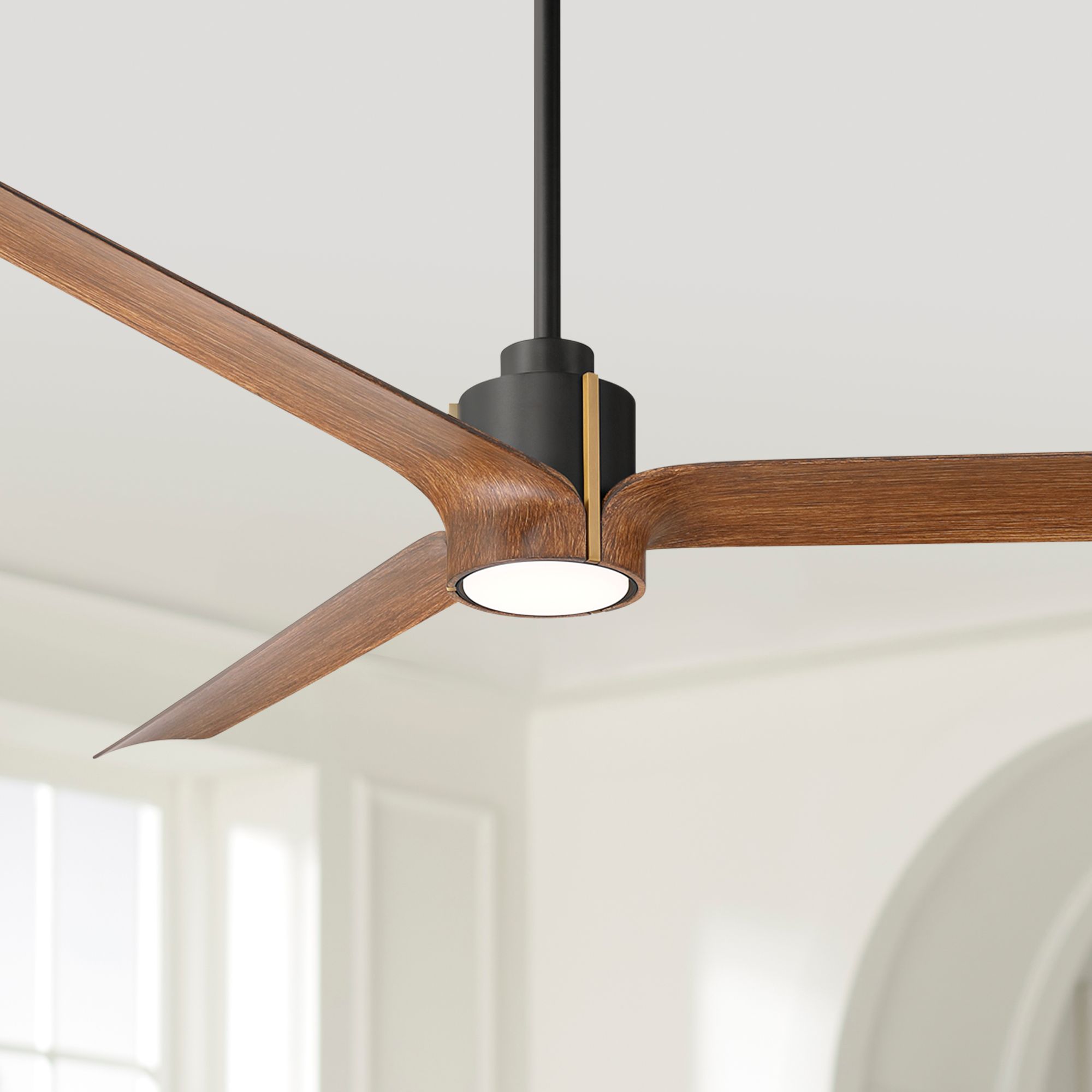 60" Casa Vieja Aero Matte Black and Koa LED Ceiling Fan with Remote