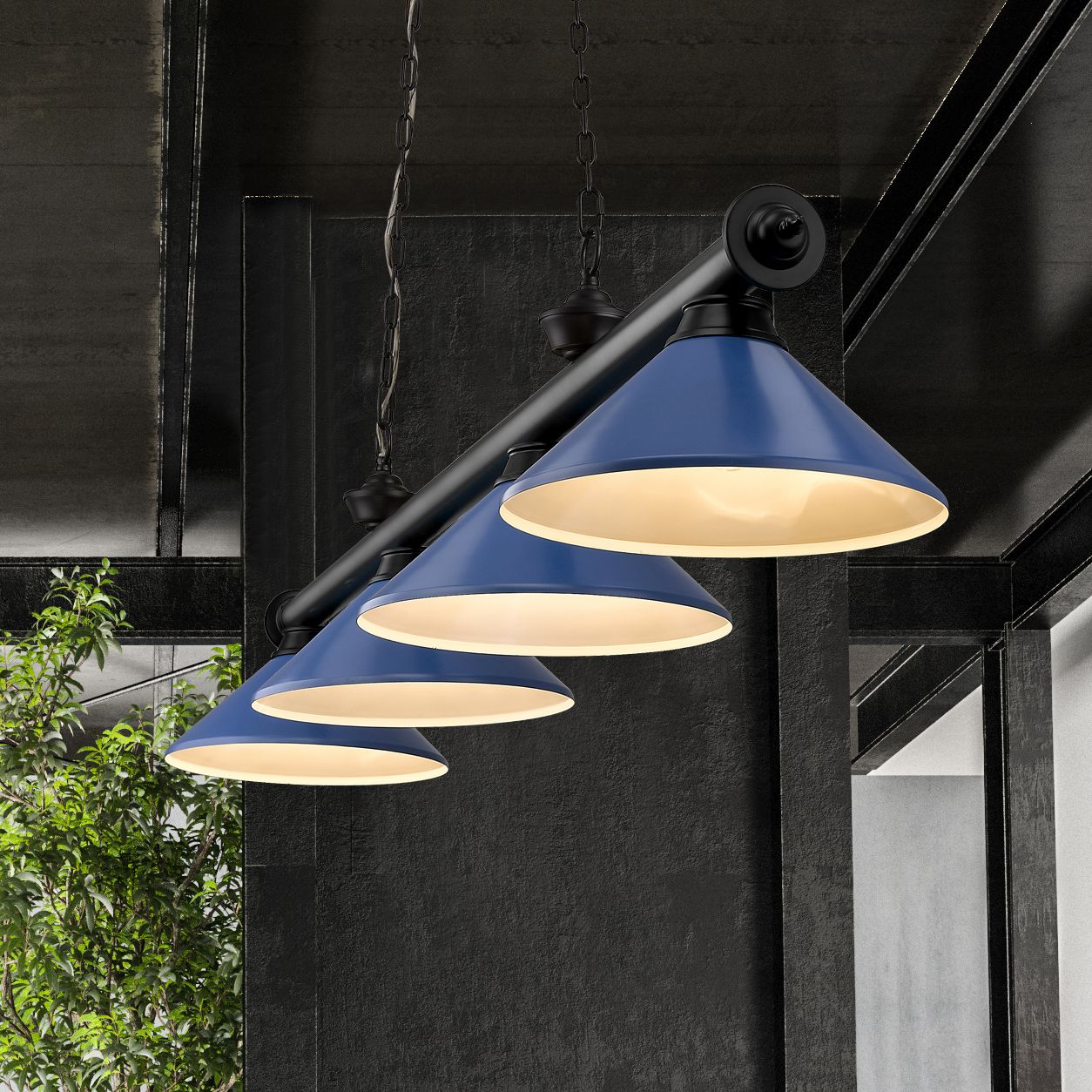 Cordon 81 3/4"W Black and Blue 4-Light Billiard Chandelier
