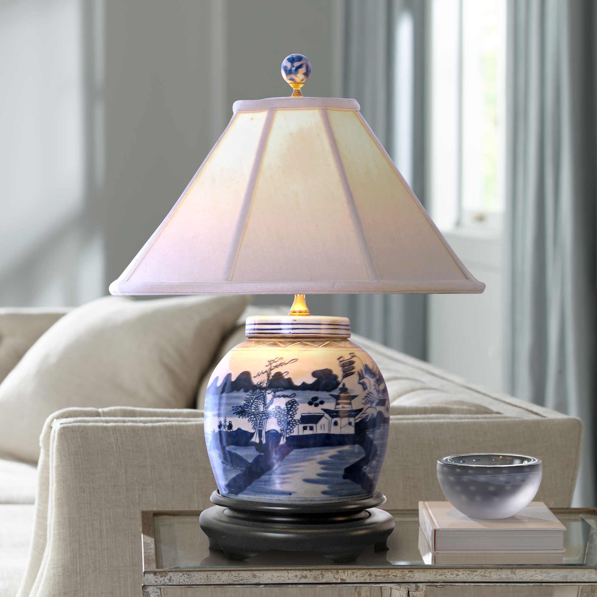 Canton Blue and White 20" High Porcelain Jar Table Lamp