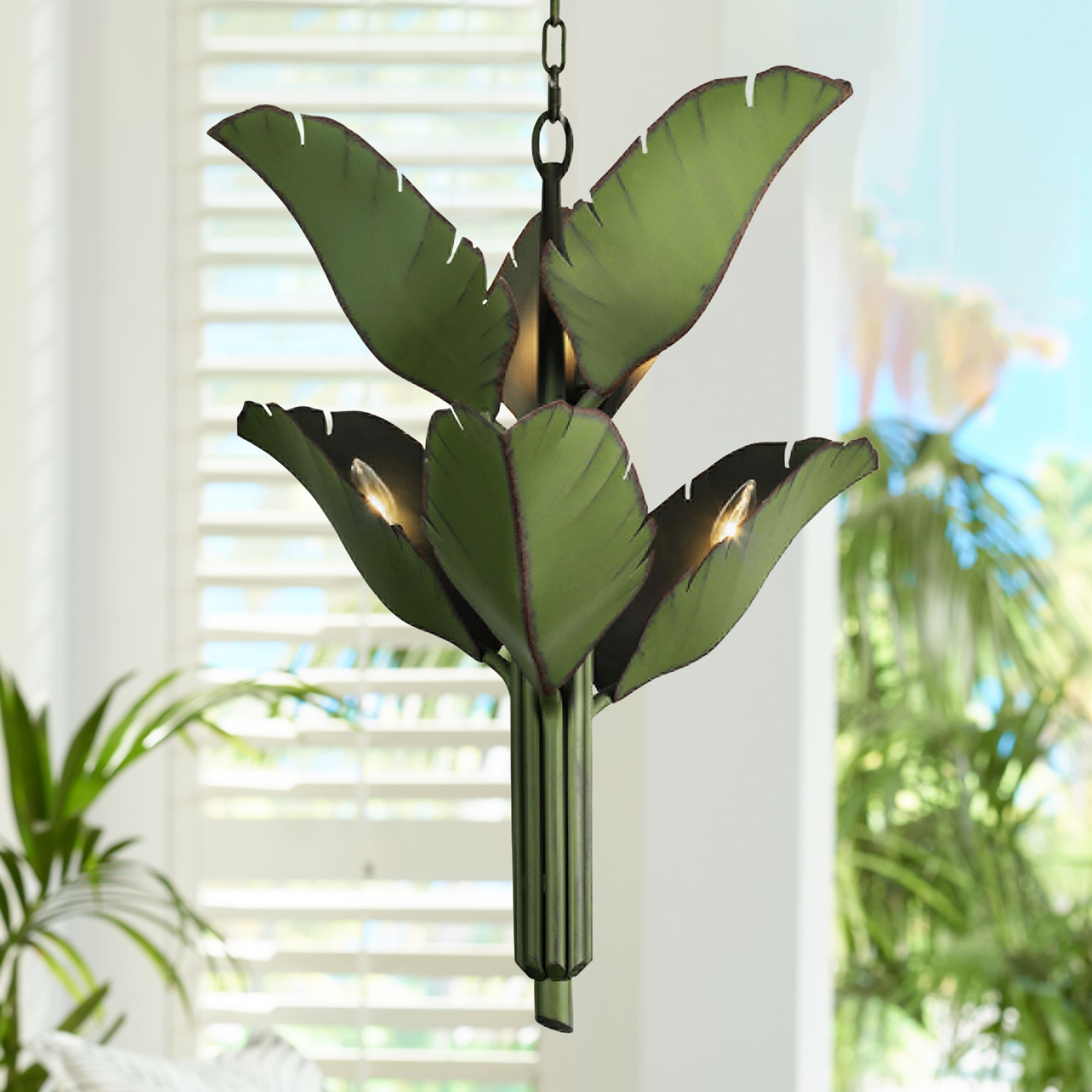 Varaluz Banana Leaf 25" Wide Natural Green Metal Chandelier