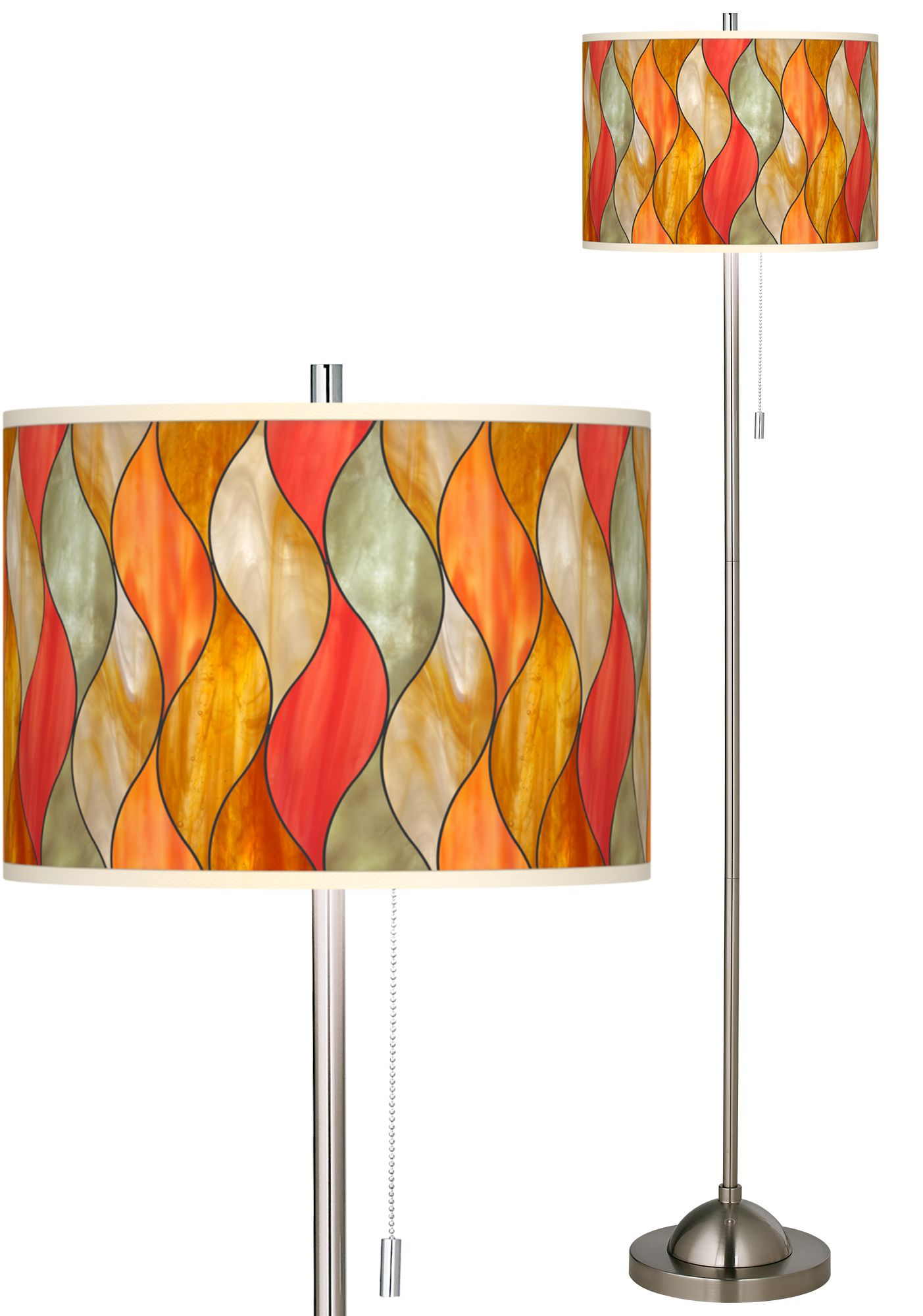 Giclee Glow 62" Flame Mosaic Shade Brushed Nickel Floor Lamp