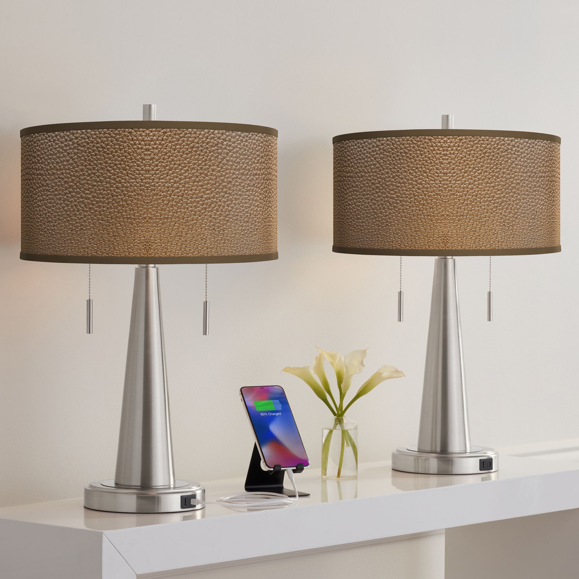 Simulated Leatherette Vicki Nickel USB Table Lamps Set of 2