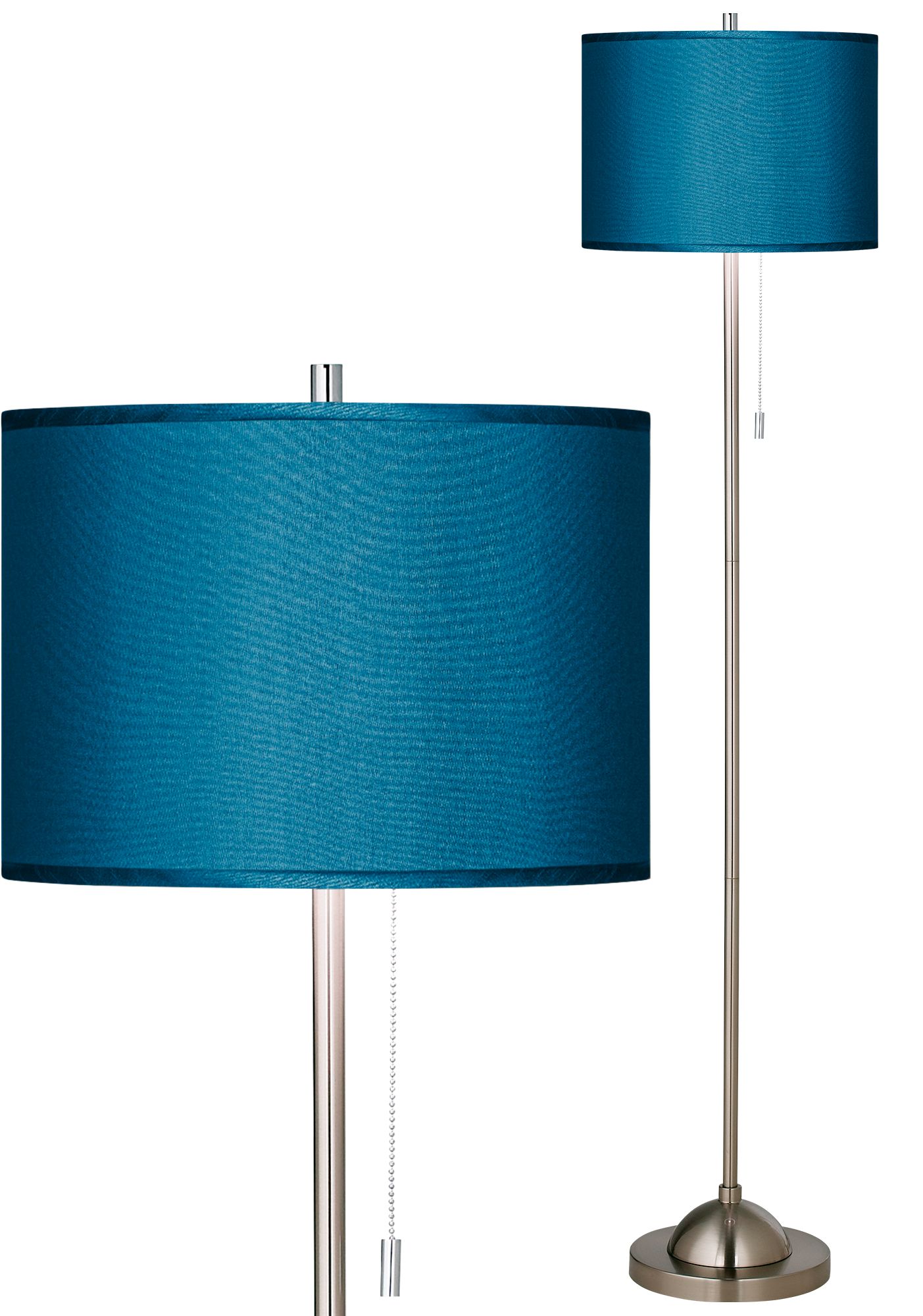 Possini Euro 62" Modern Nickel Floor Lamp with Handcrafted Blue Shade