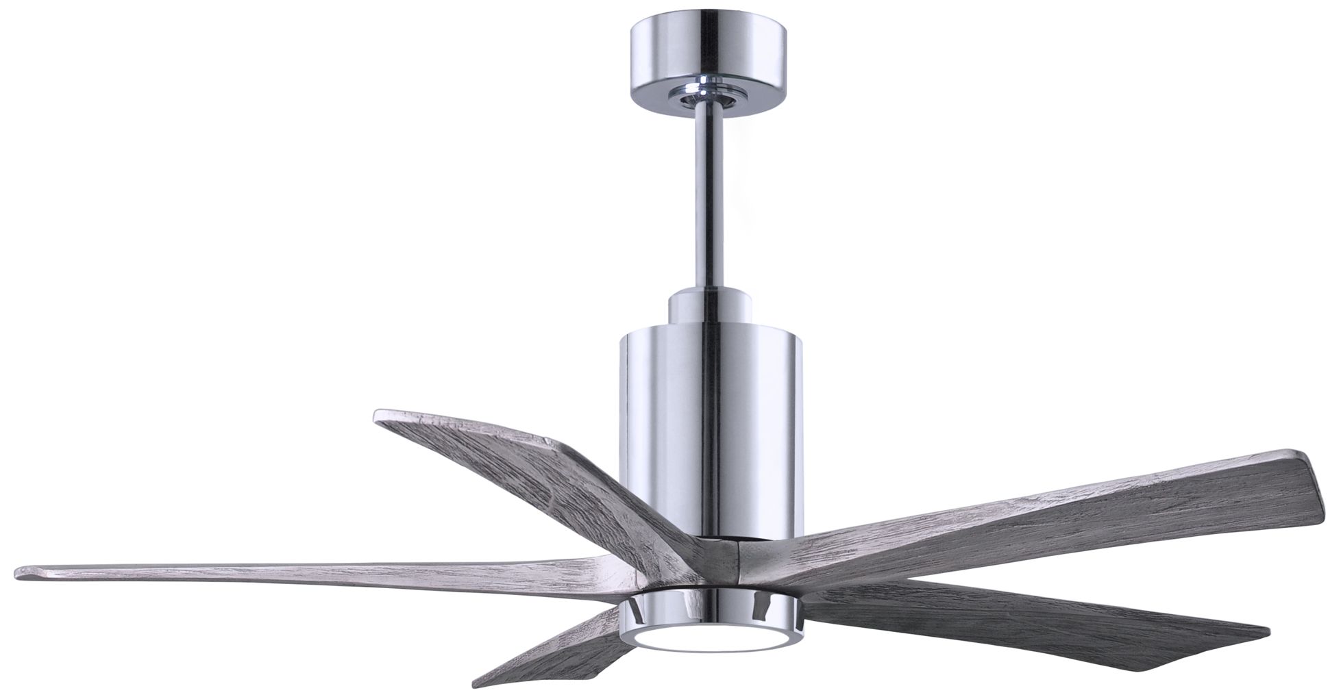 52" Patricia-5 Polished Chrome and Barn Wood LED Ceiling Fan