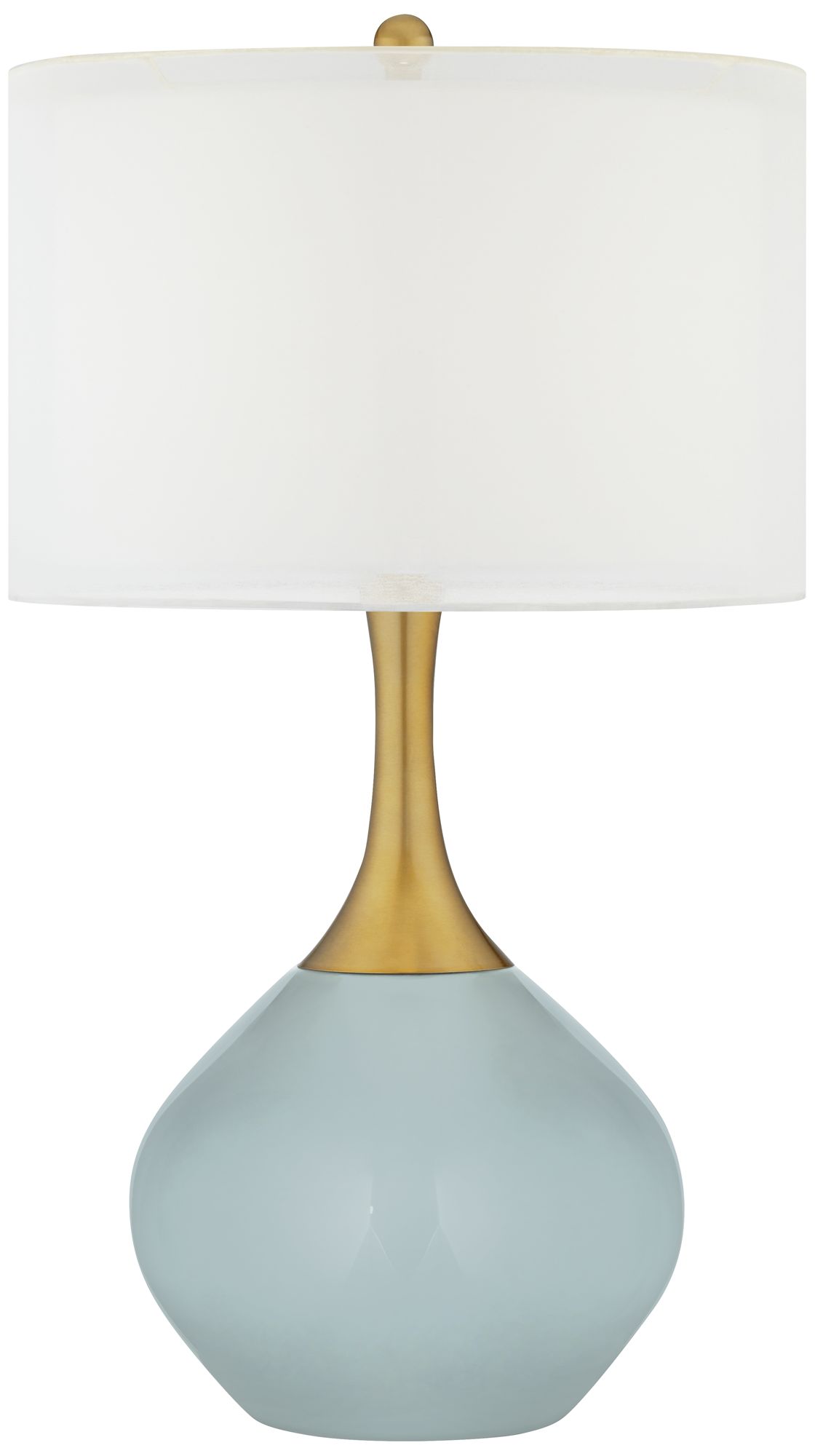 Color Plus Nickki Brass 30 1/2" Rain Blue Modern Table Lamp