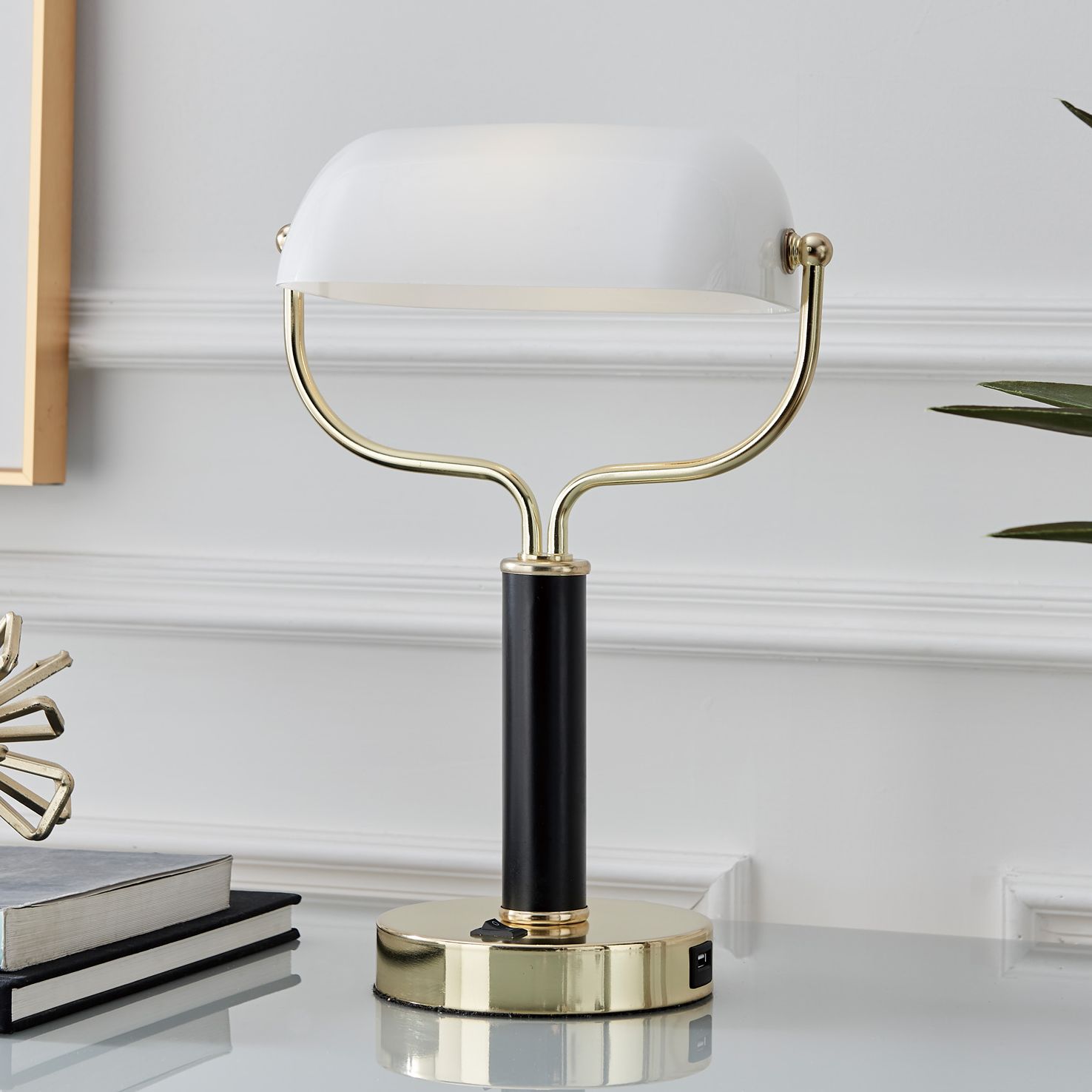 Lite Source Yanni 15" White and Gold Banker Desk Lamp with USB Port