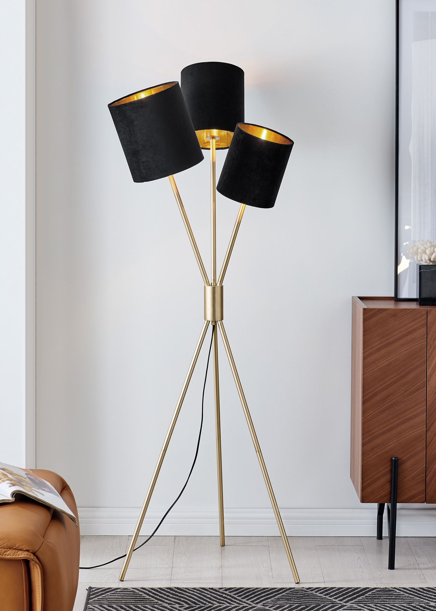 Lite Source Crisanta 61" 3-Light Black Shade Modern Tripod Lamp