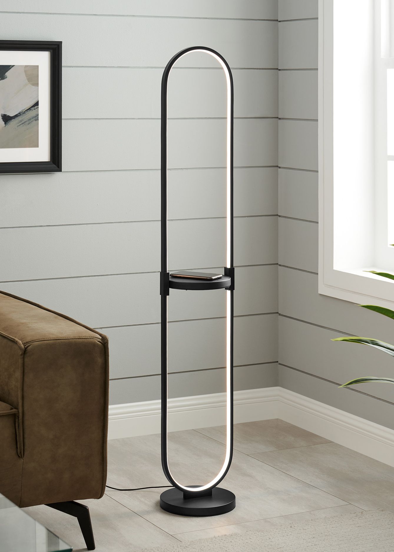 Lite Source Dysis 56" Black LED USB Floor Lamp with Wireless Charger