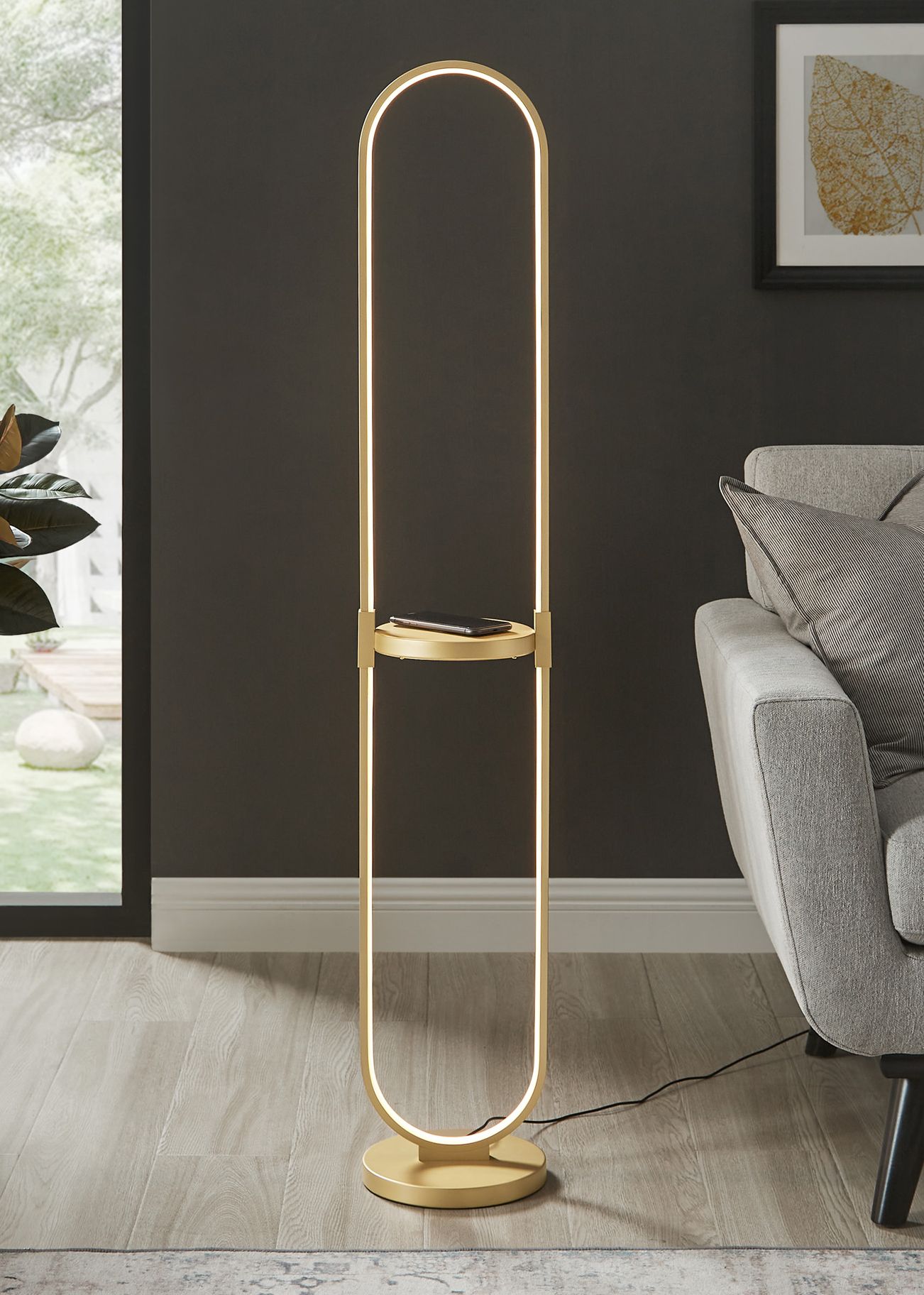 Lite Source Dysis 56" Gold LED USB and Wireless Charger Floor Lamp