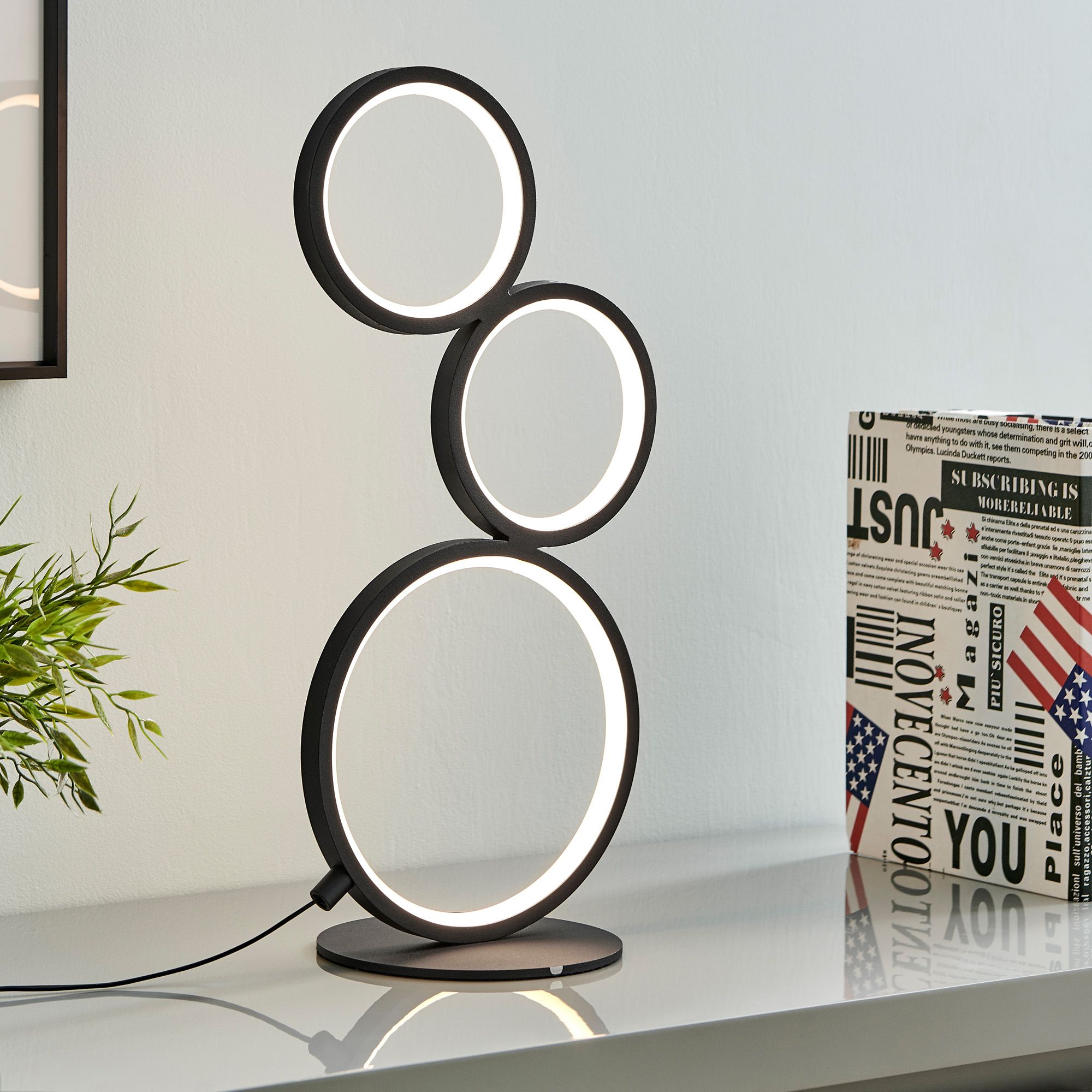 Lite Source Fannie 12 1/4" High Black Gray Ring Modern LED Accent Lamp
