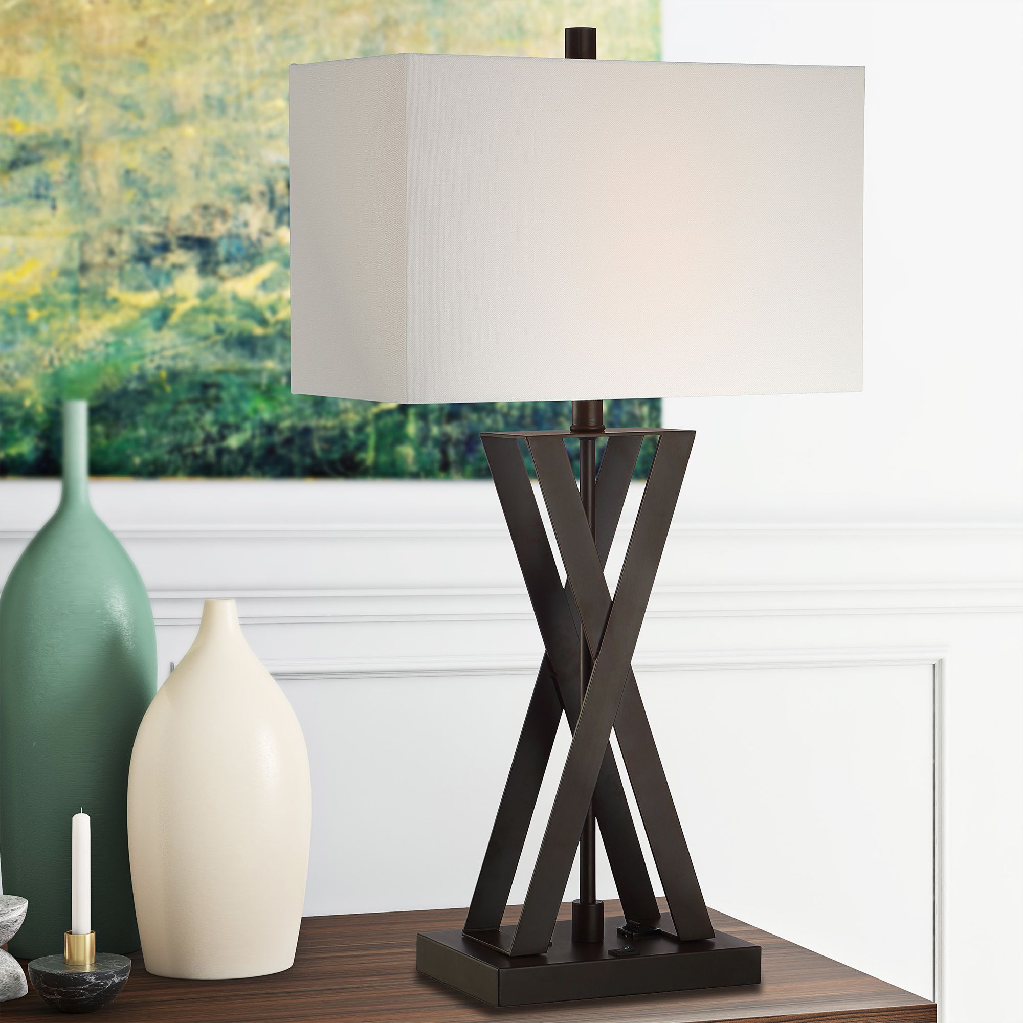 Lite Source Fonda 30" High Dark Bronze Outlet and USB Table Lamp