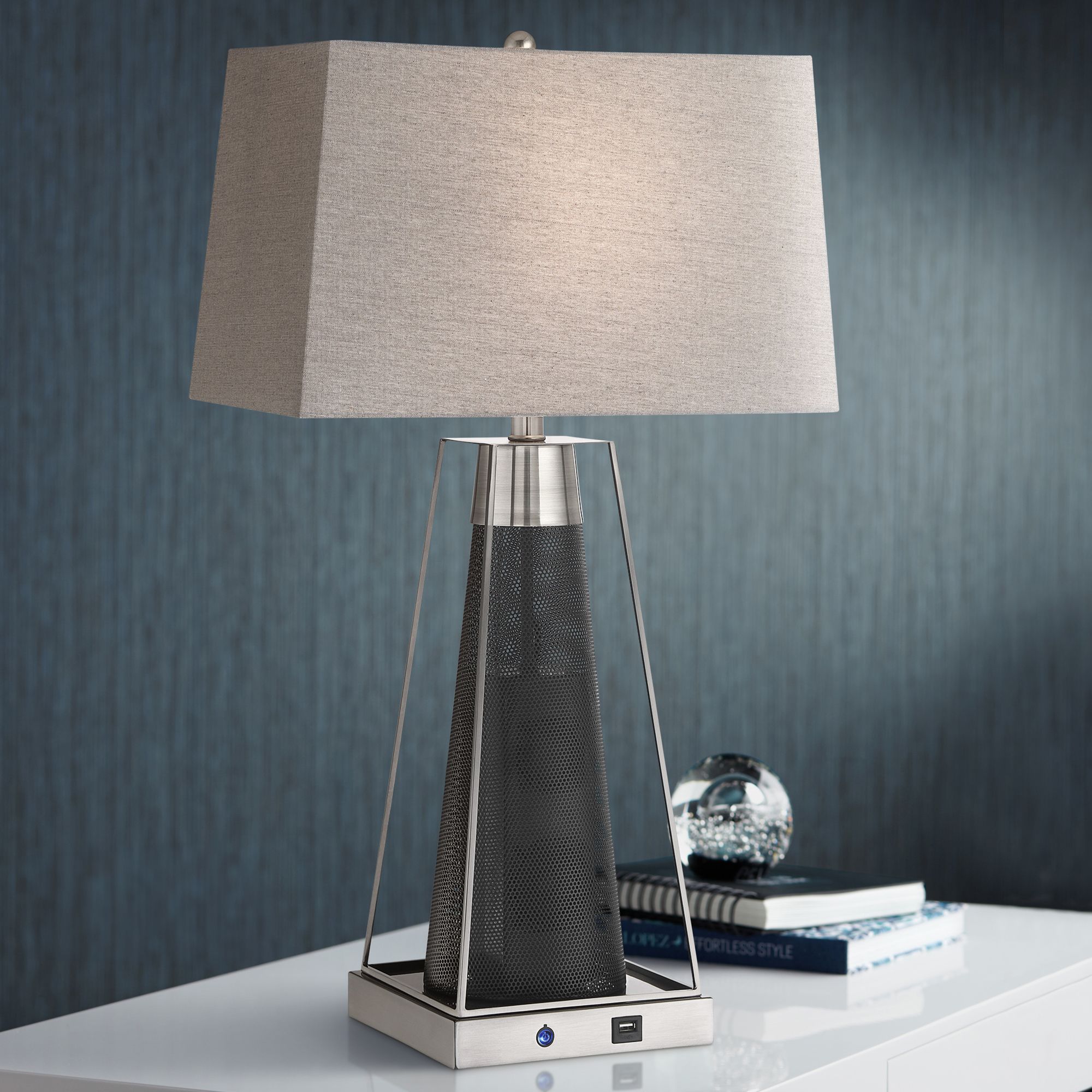 Lite Source Granger 29" Nickel Black USB Bluetooth Speaker Table Lamp