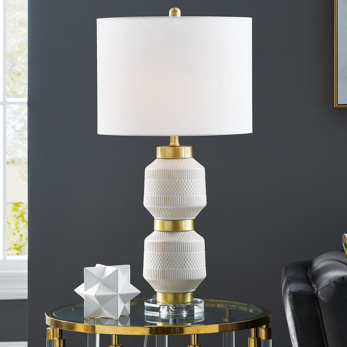Lite Source Quatro 17" Gray Shade White Ceramic Accent Table Lamp