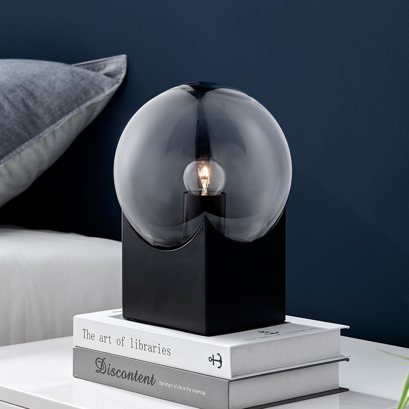 Lite Source Oksena 11" Modern Black and Smoke Glass Orb Table Lamp