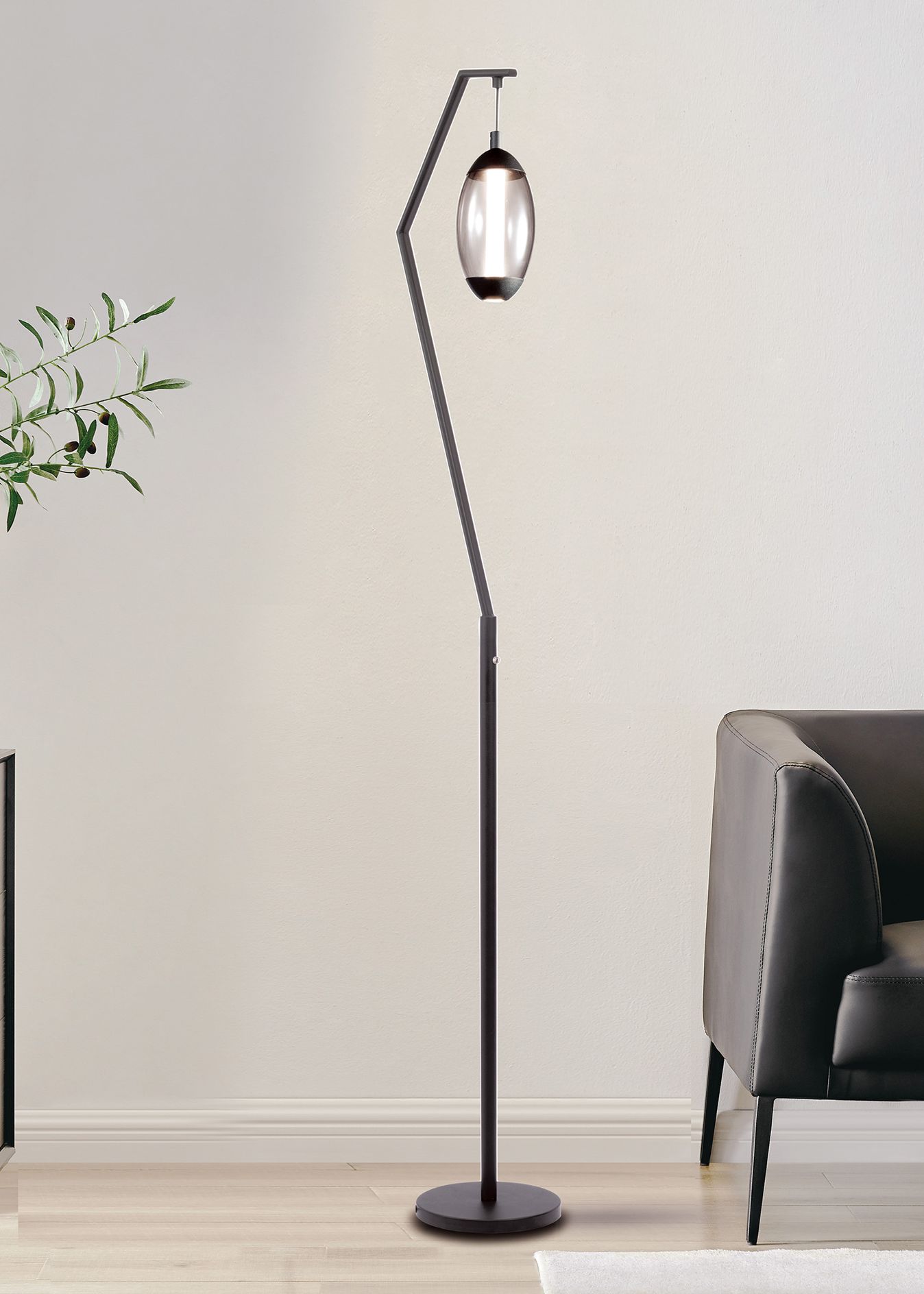 Lite Source Palta 63" High Black Finish Angled Arm LED Floor Lamp