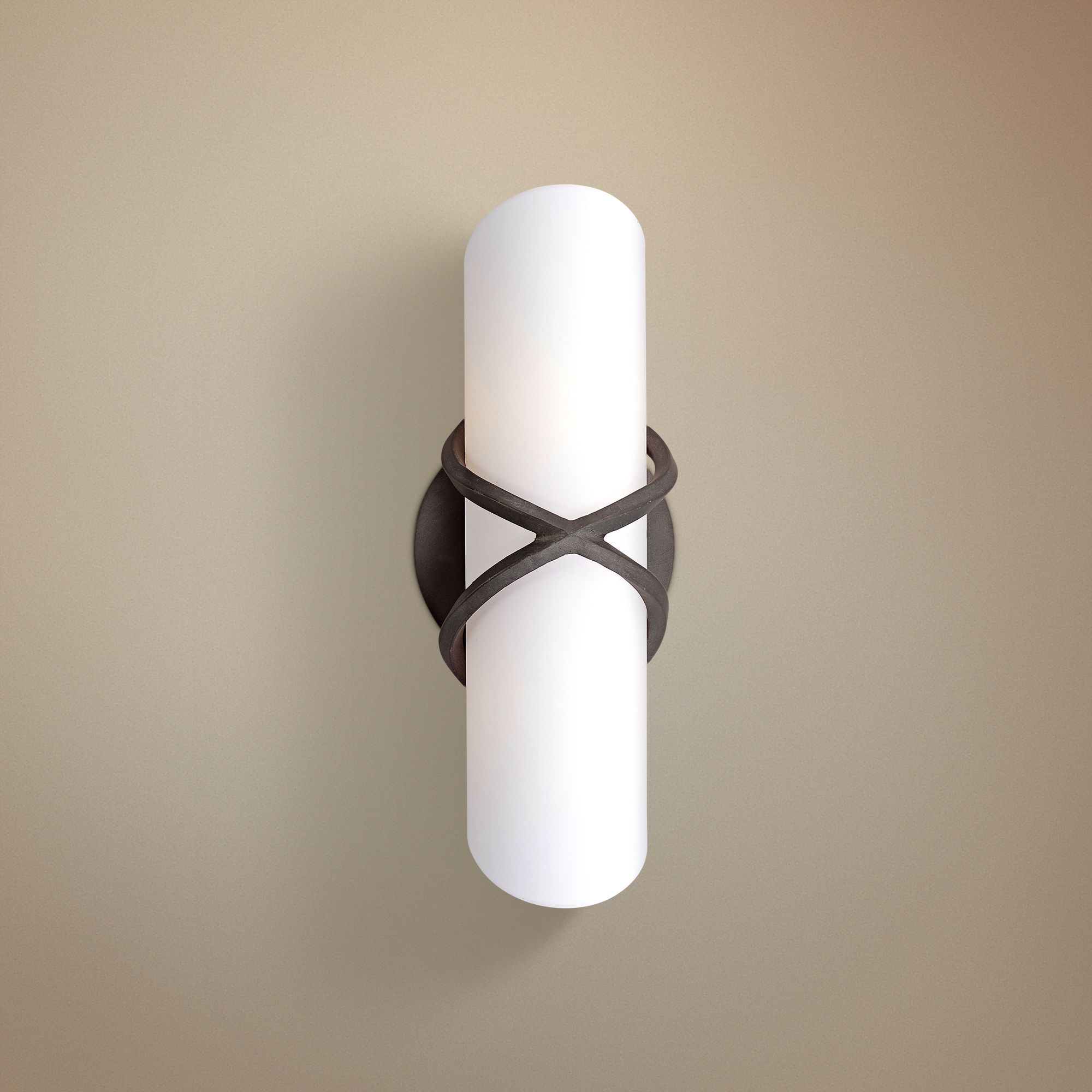 Brixton 15" High Gunmetal Glass Wall Sconce