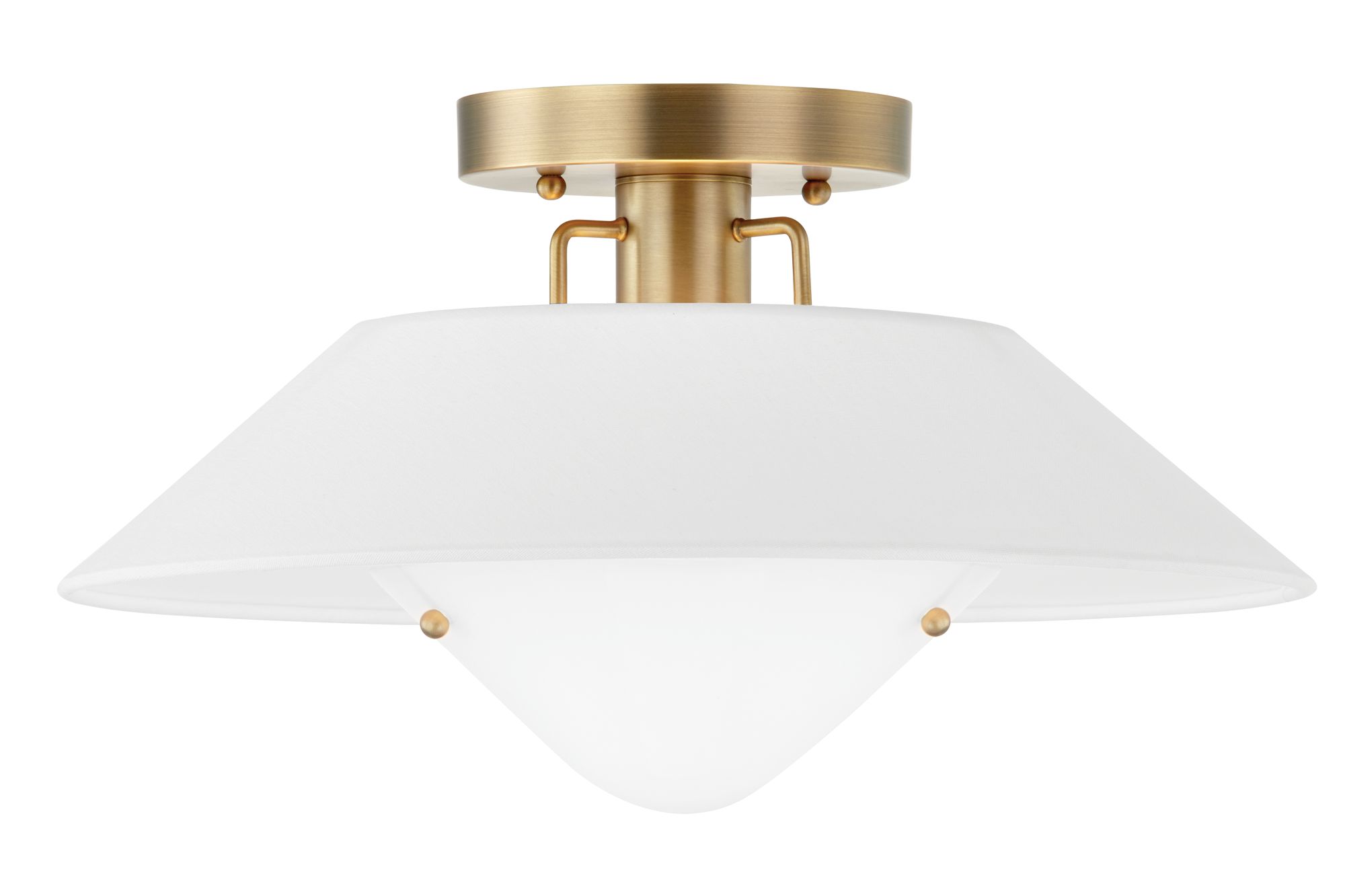 Troy Lighting Otto 16" Wide Patina Brass Linen Shade Ceiling Light