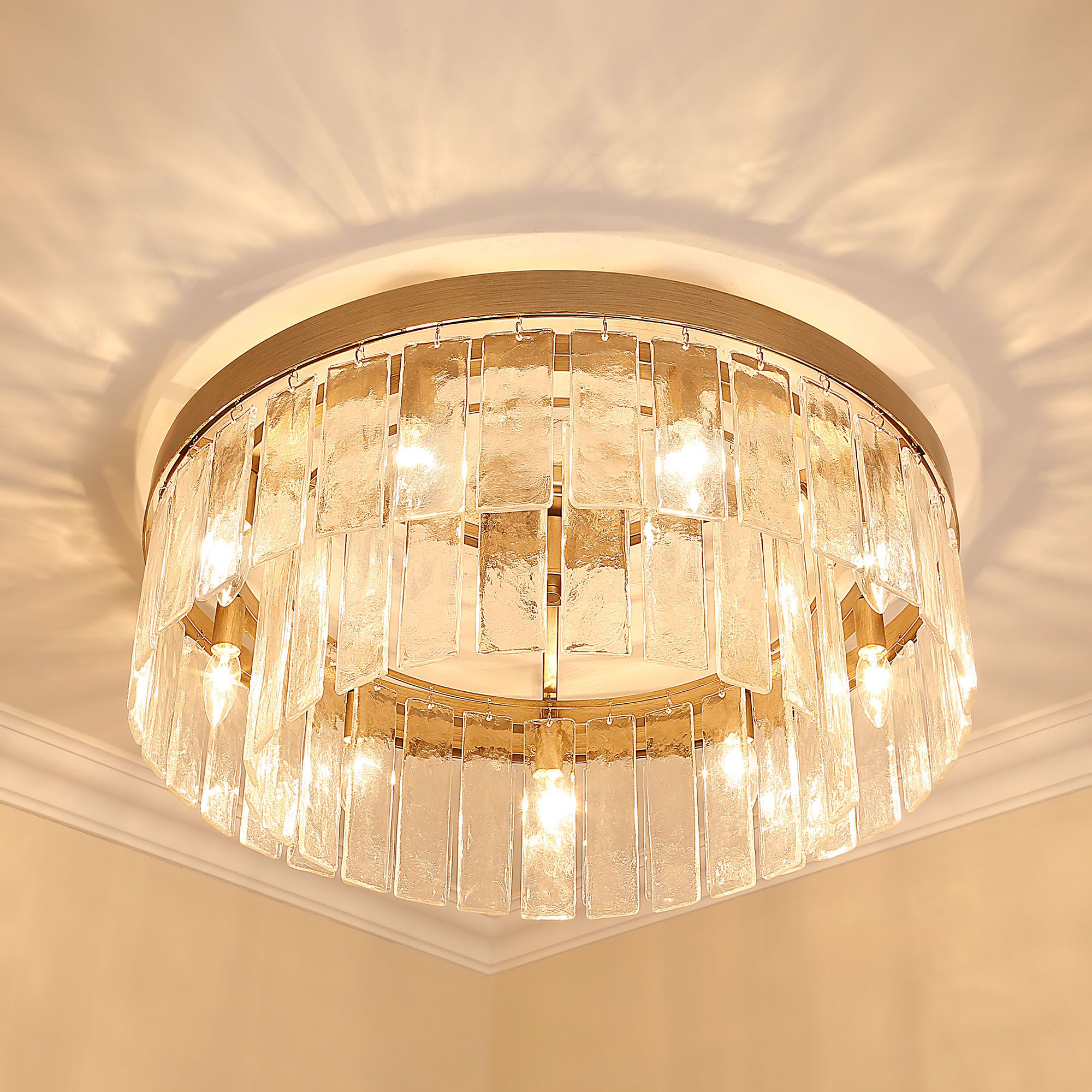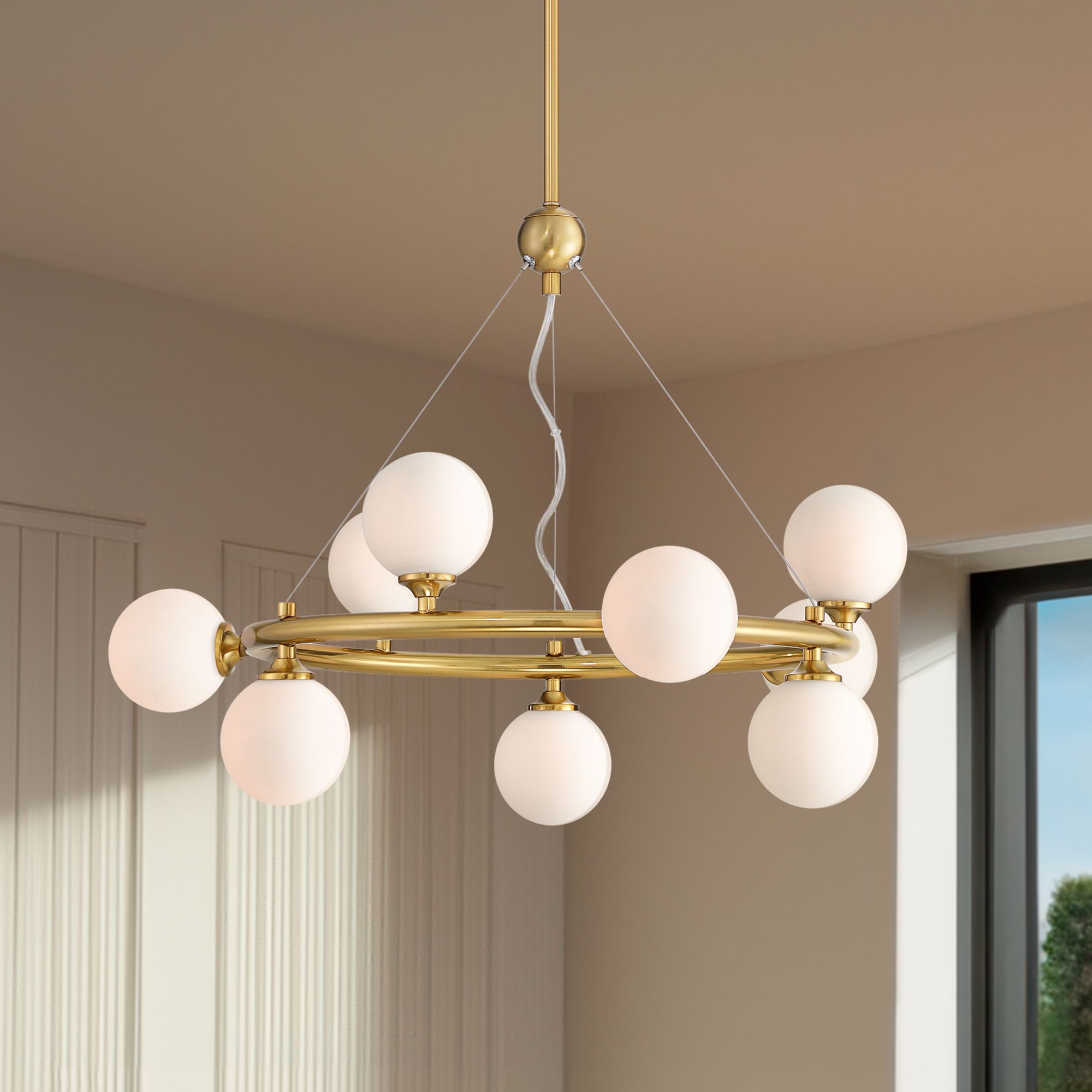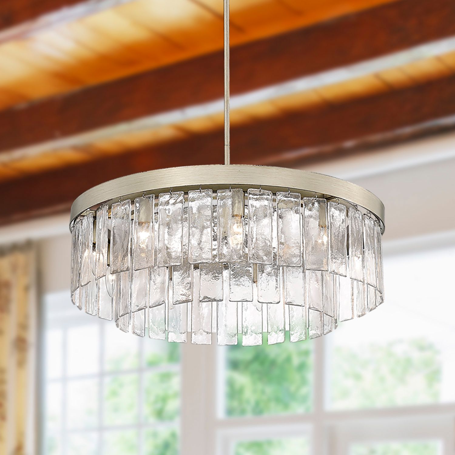 Ciara 27"W White Gold 9-Light Chandelier w/ Hammered Glass